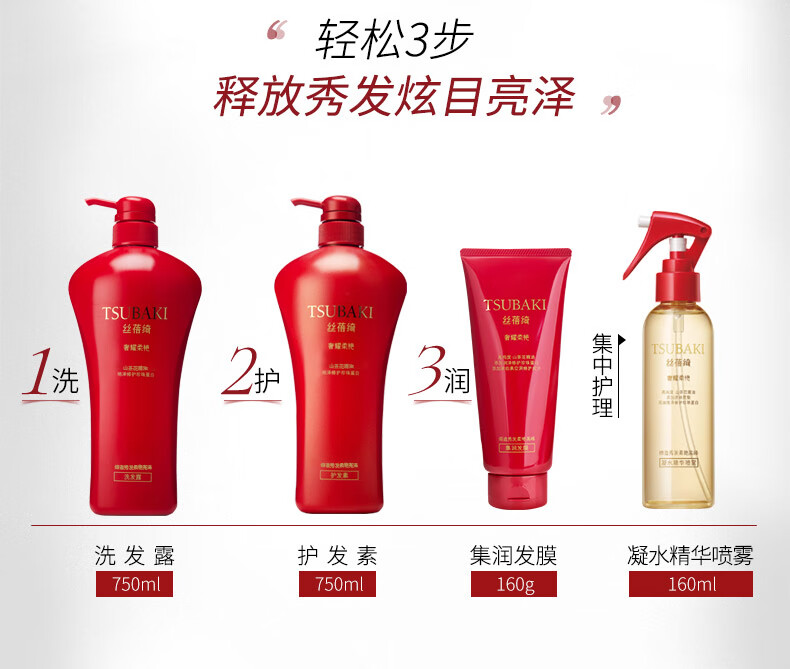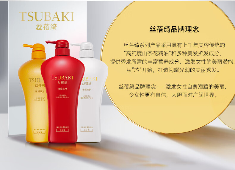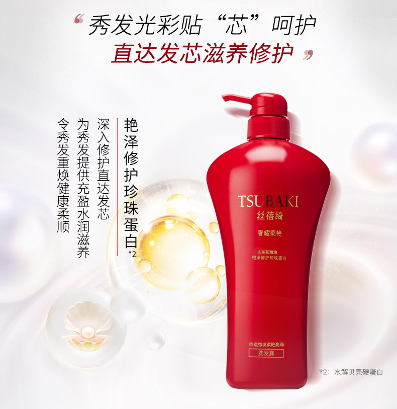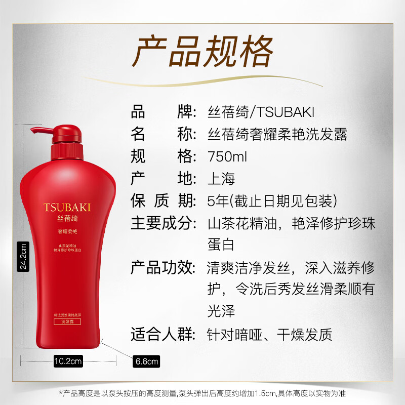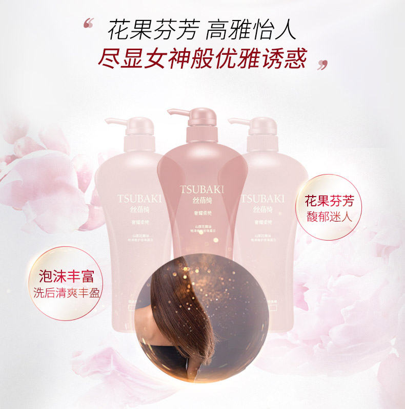 丝蓓绮(TSUBAKI)奢耀柔艳洗发水750ml滋润柔顺蓬松洗头膏男女洗发露改善干枯