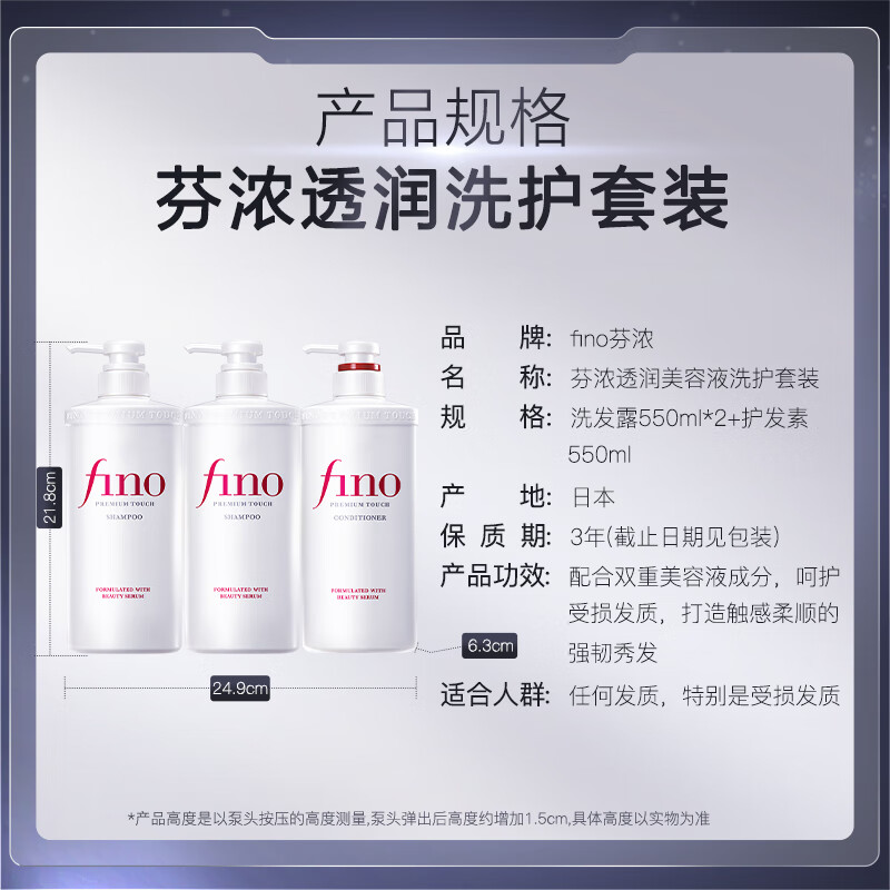 FINO芬浓洗发水透润美容液洗头膏1.1L 护发素550ml强韧发丝