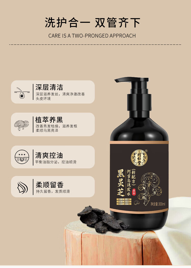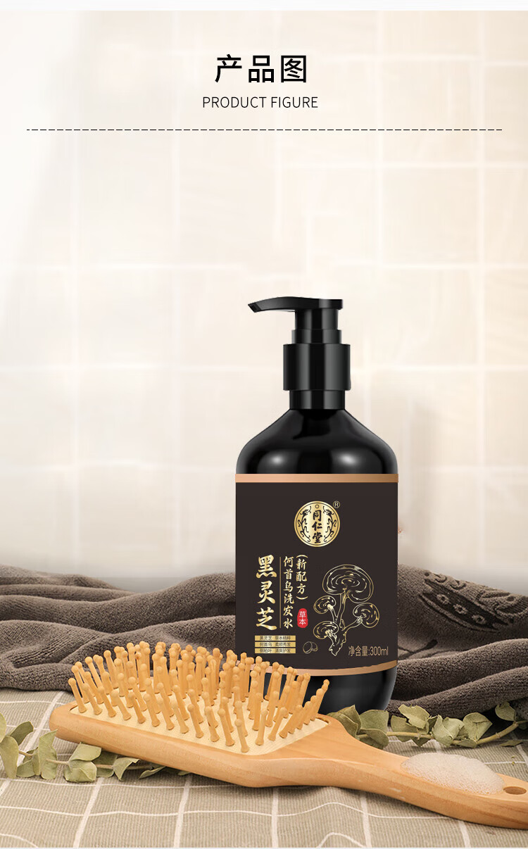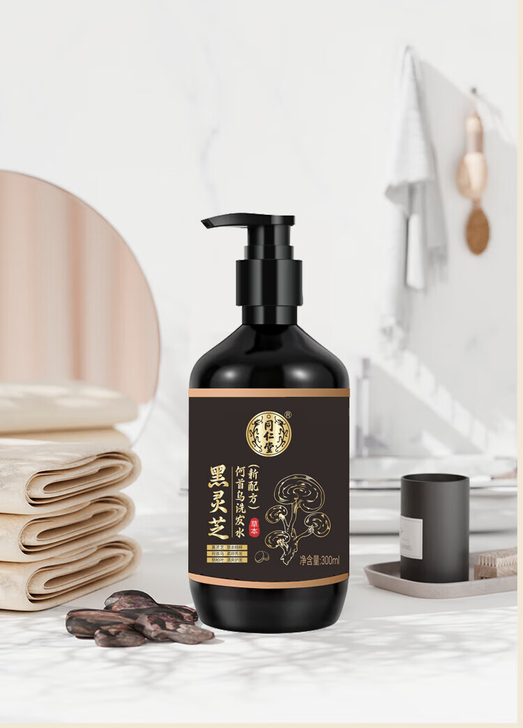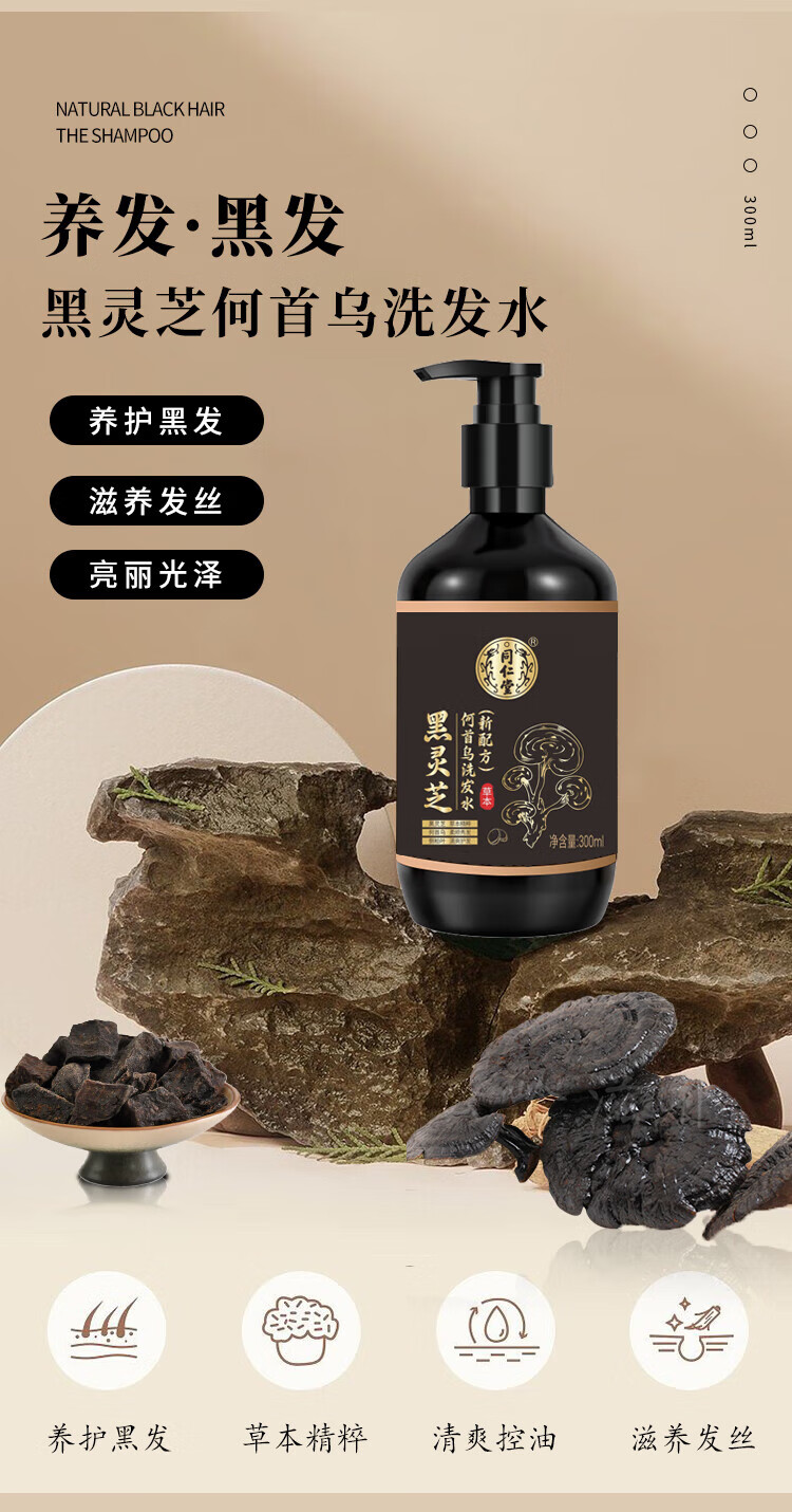 同仁堂何首乌侧柏叶洗发水自然植萃黑灵芝滋养发根养护头皮亮发300ml