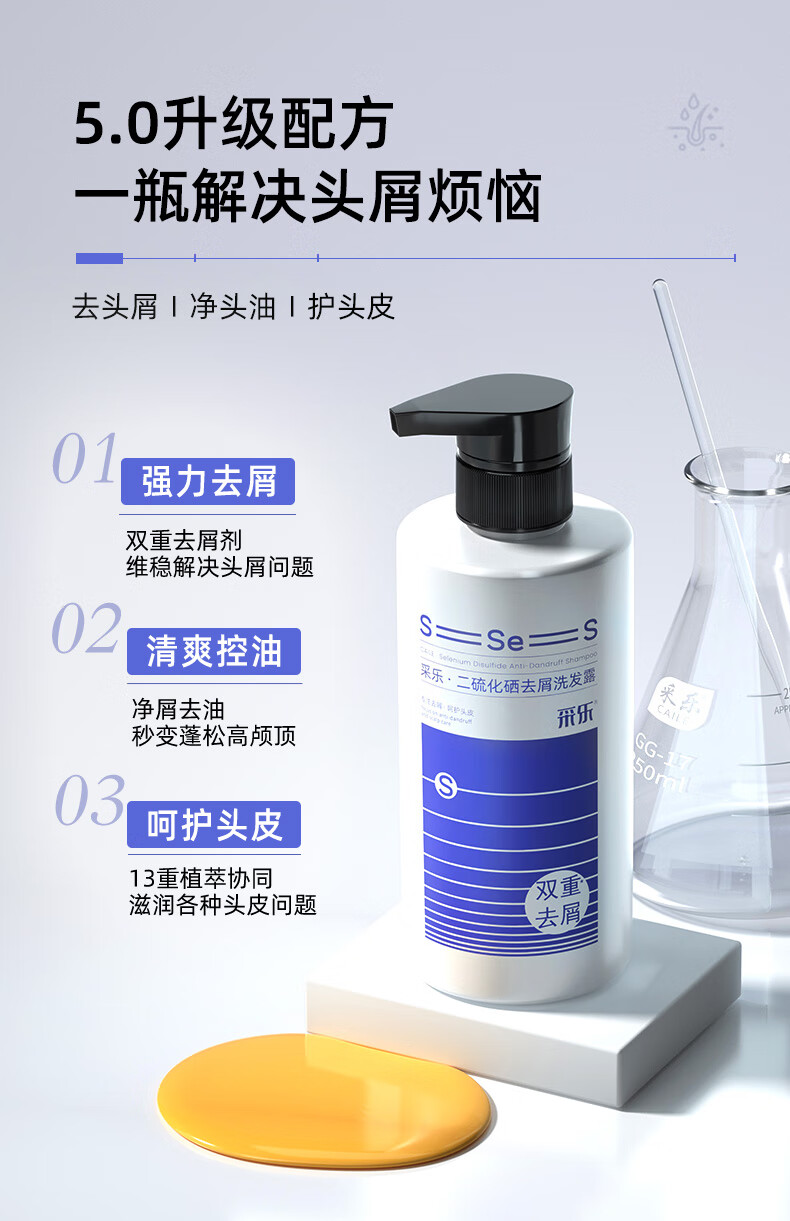 采乐专研二硫化硒 ZPT双重去屑止痒控油洗发水二硫化硒洗剂420ml