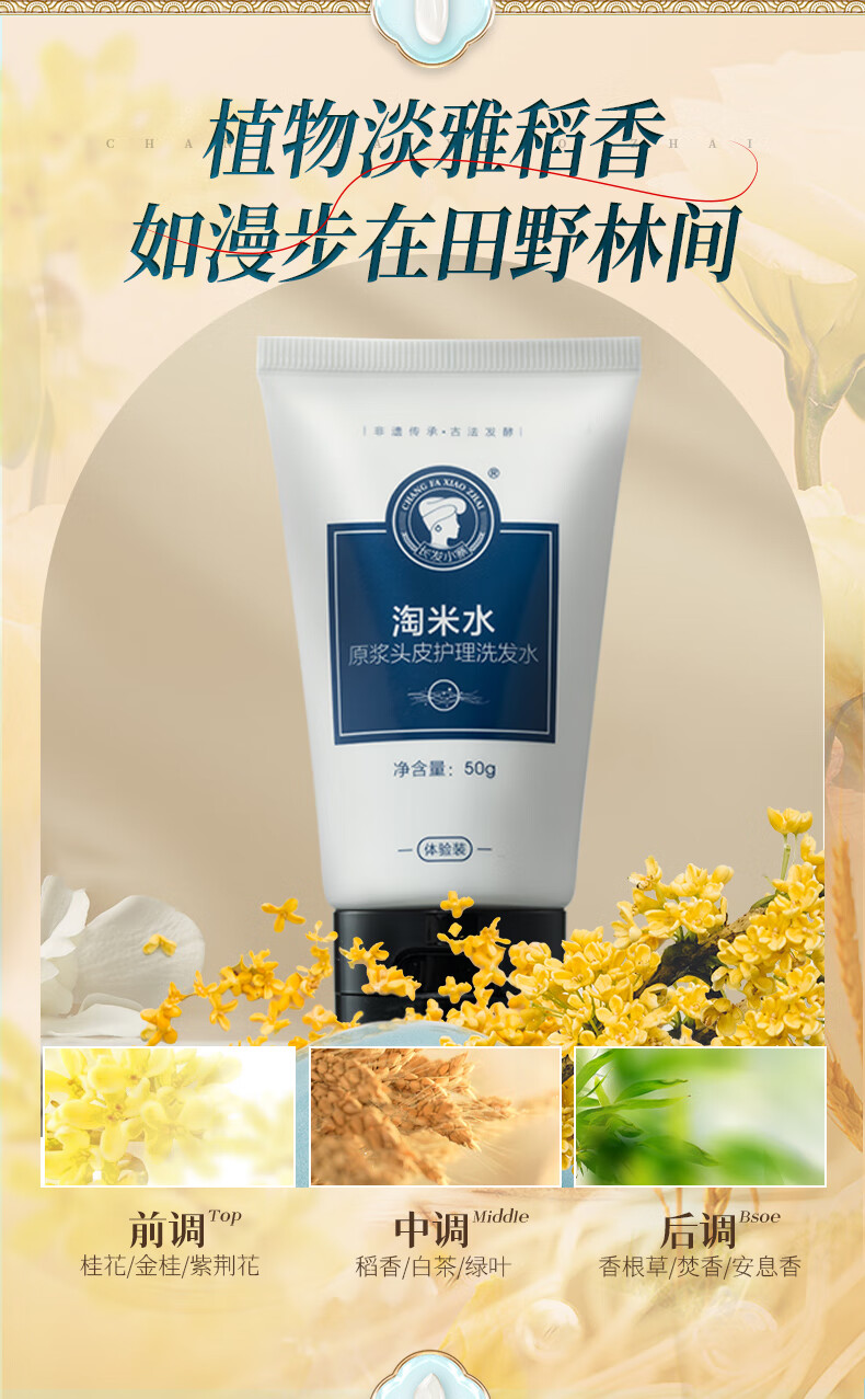 长发小寨淘米水洗发水控油去屑蓬松顺滑蓬松清爽头皮护理旅行装50g