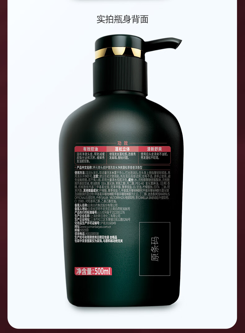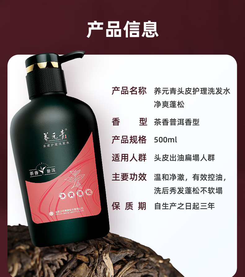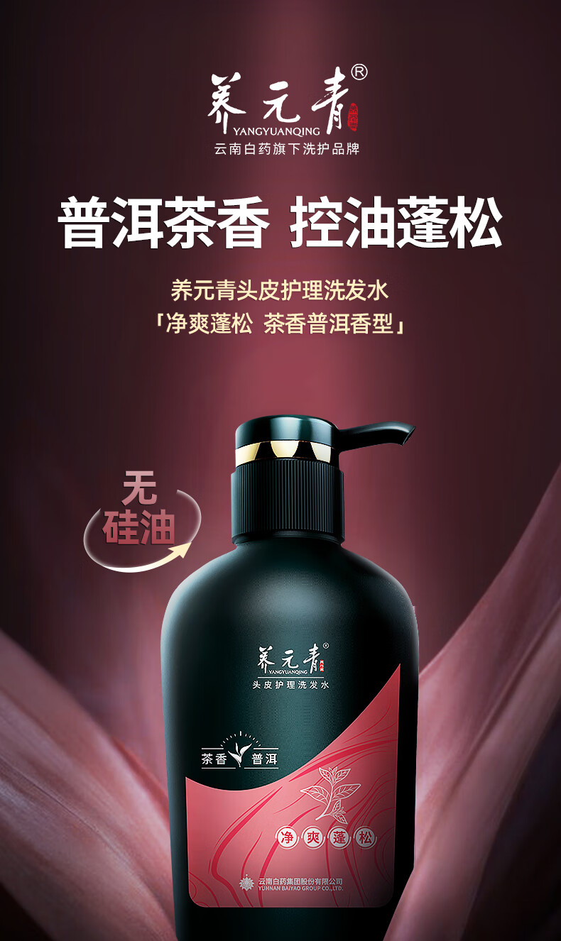 养元青普洱洗发水控油无硅油洗发露清爽蓬松去油洗发护发洗头膏洗发水500ml