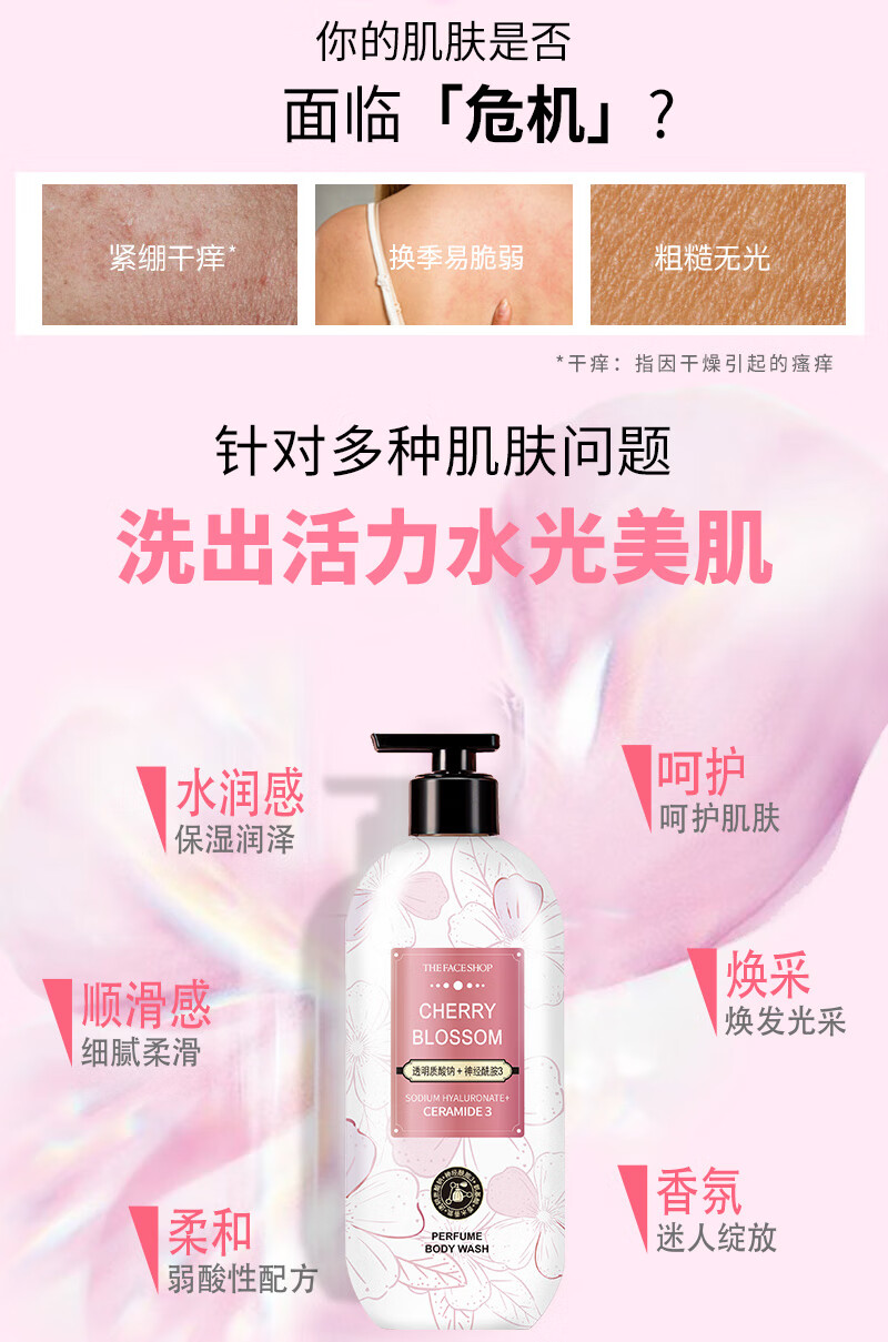 菲诗小铺(THEFACE SHOP)保湿滋润香氛沐浴露 落樱花语 500ml