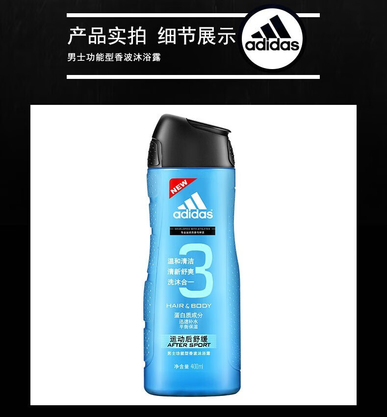 阿迪达斯(adidas)男士沐浴露 洗沐二合一 洗发水沐浴露 源动激活400ml 250ml
