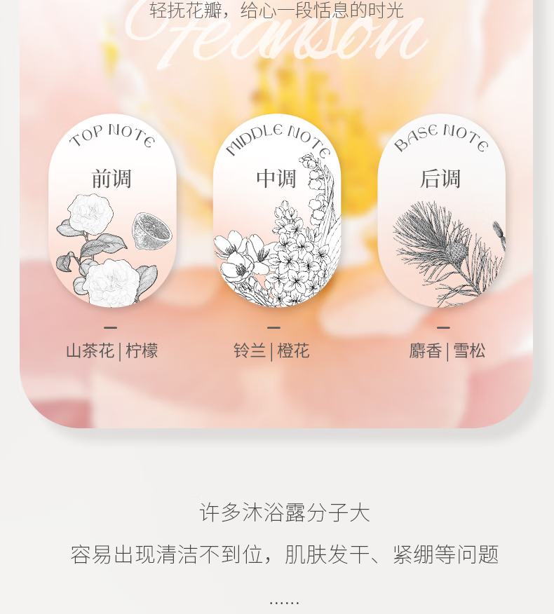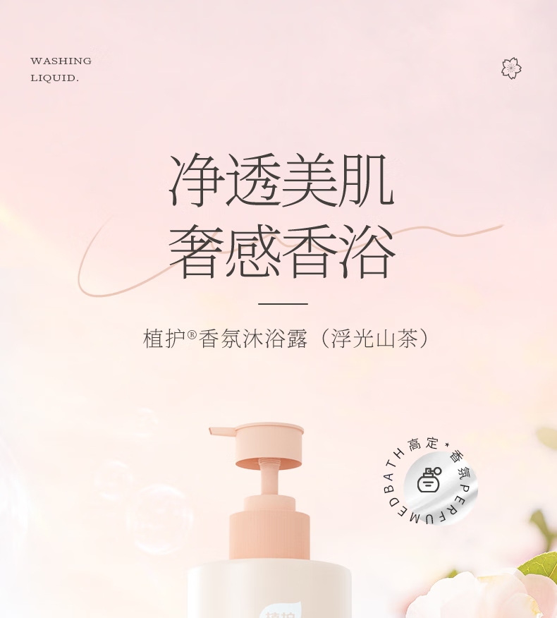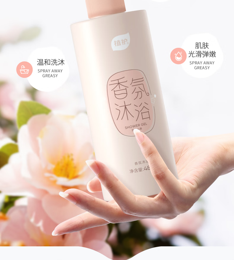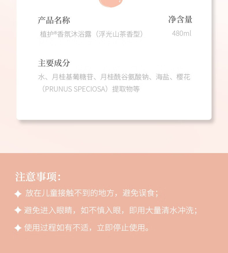 植护香氛沐浴露持久留香72小时男女深层清洁温和乳液 山茶花沐浴露480ml*1瓶