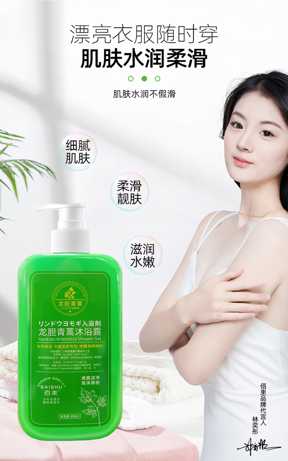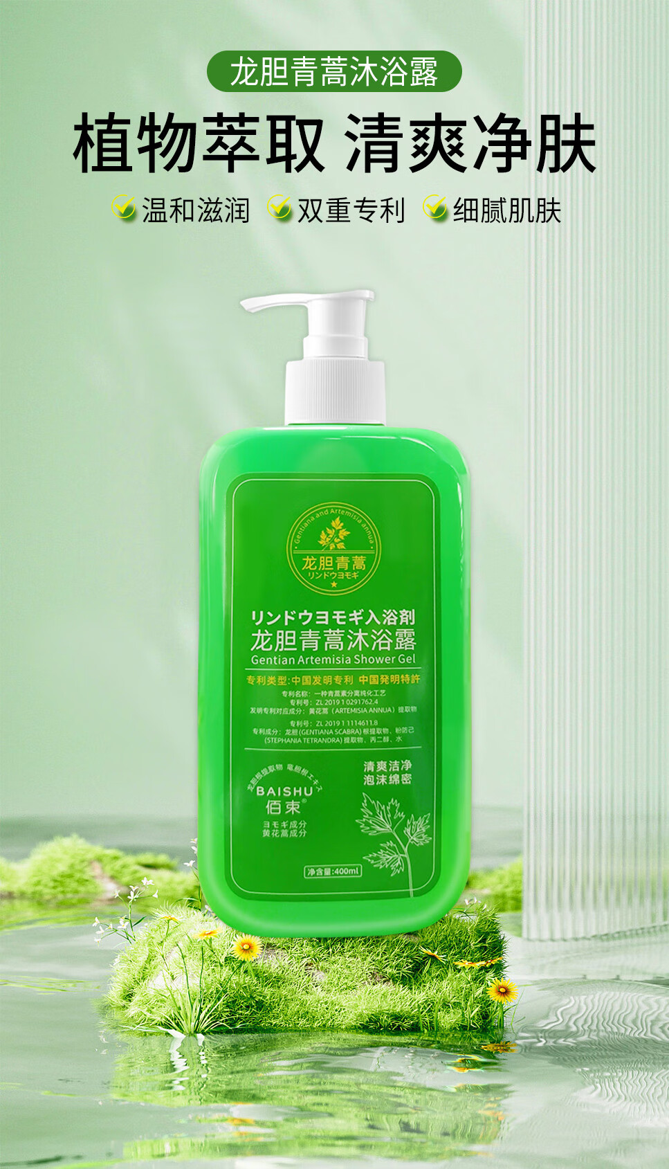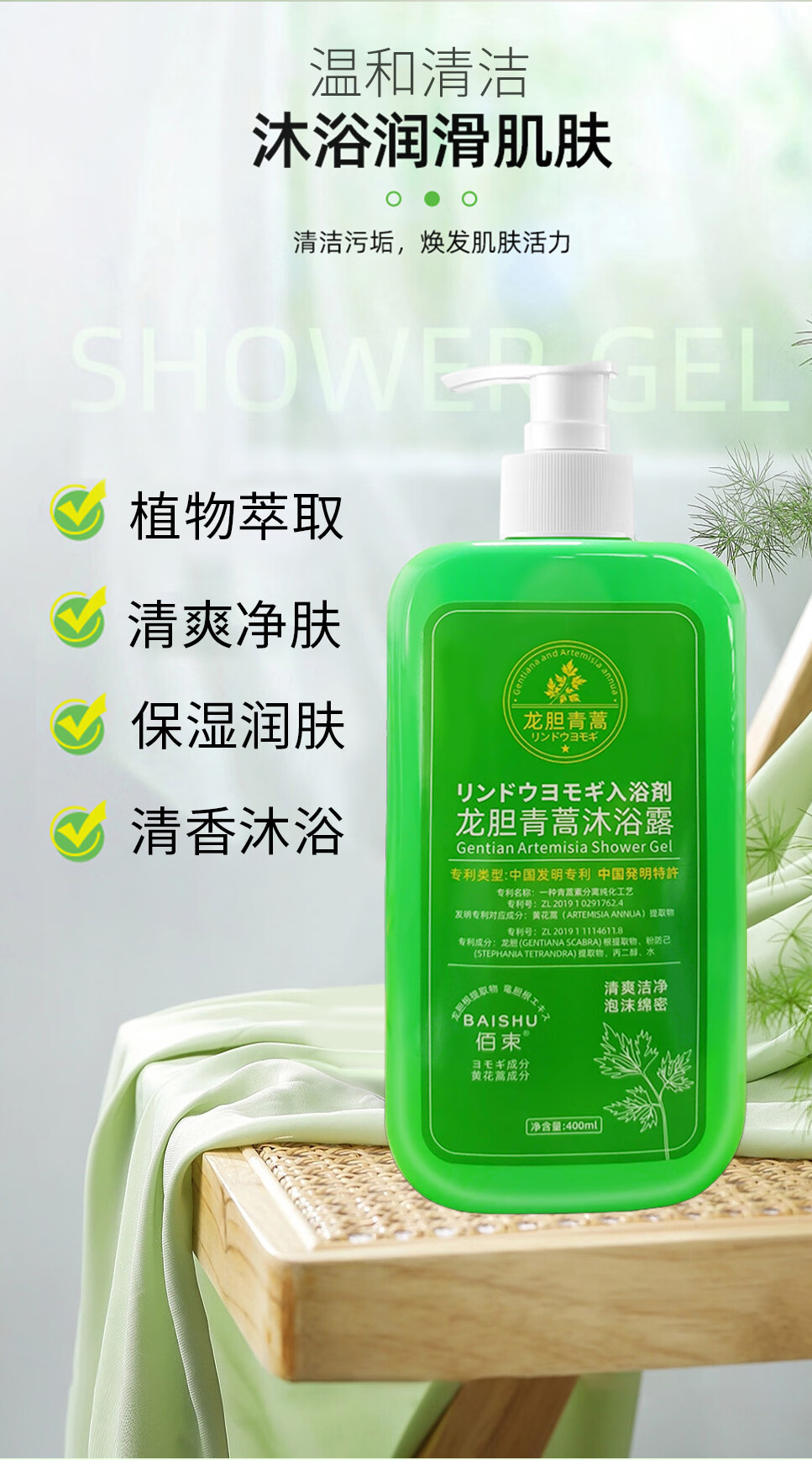 佰束青蒿沐浴露水润保湿清洁后背油腻多效草本沐浴清爽男女全身通用龙胆青蒿沐浴露400mlx1瓶