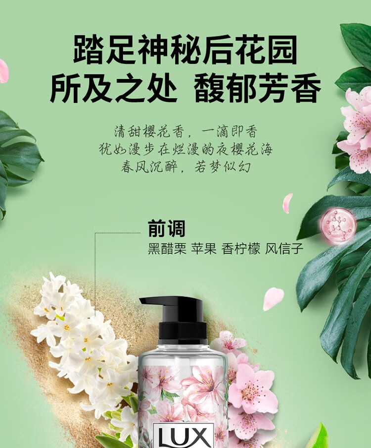 力士植萃沐浴露香味持久 植物精油沙龙香氛 温和配方沐浴乳男女通用 小苍兰750g