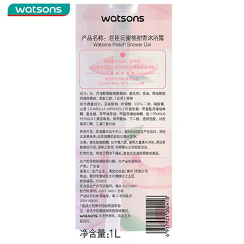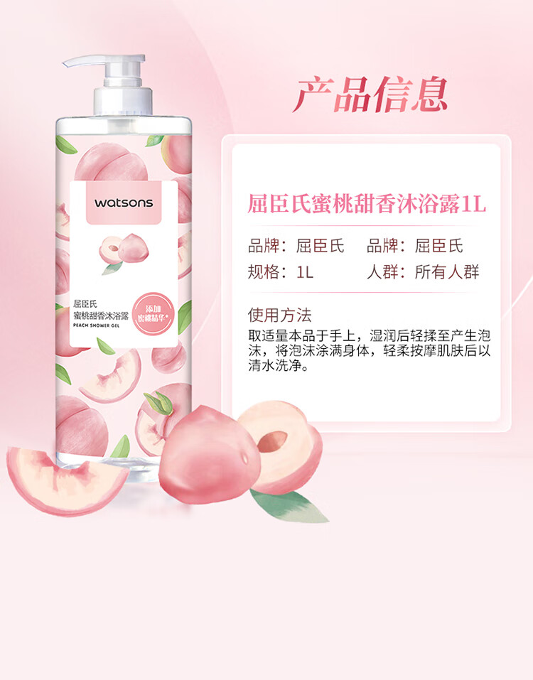 屈臣氏蜜桃甜香沐浴露1L持久留香蜜桃香氛保湿沐浴液男女通用家庭装