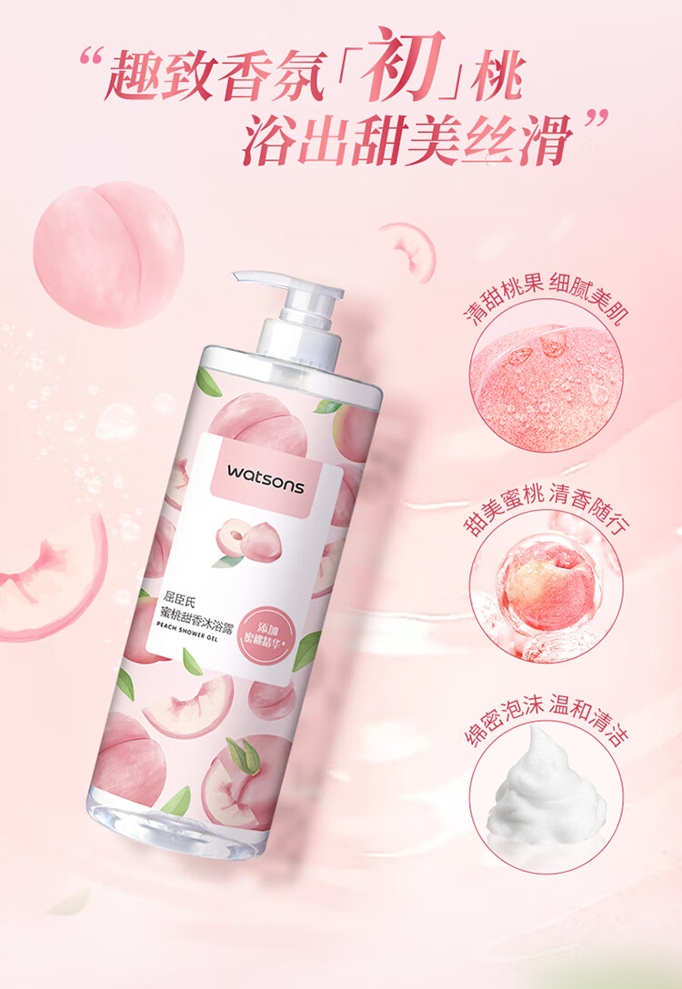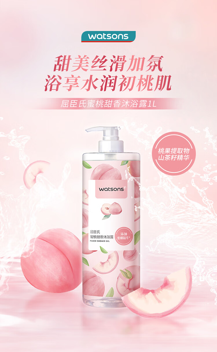 首页 > 身体护理 > 屈臣氏蜜桃甜香沐浴露1L持久留香蜜桃香氛保湿沐浴液男女通用家庭装