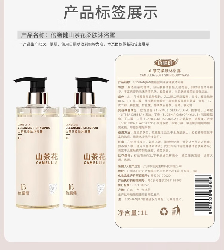 首页 > 身体护理 > 倍膳健山茶花氨基酸芳香沐浴露清爽保湿止痒除螨沐浴乳液男女士淋浴露1L