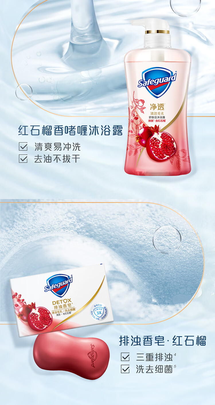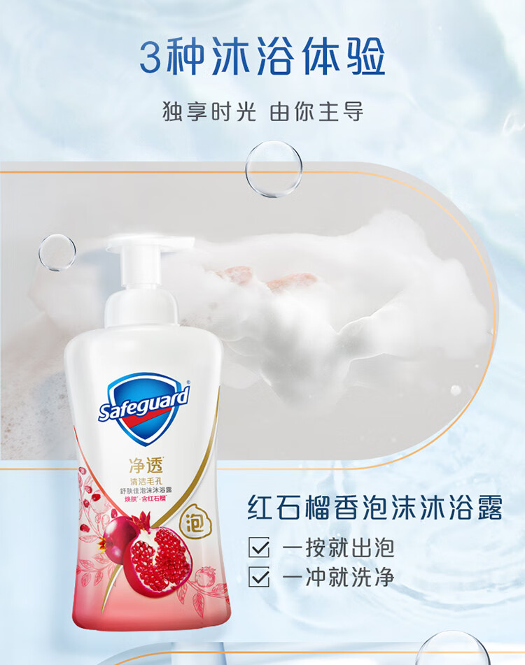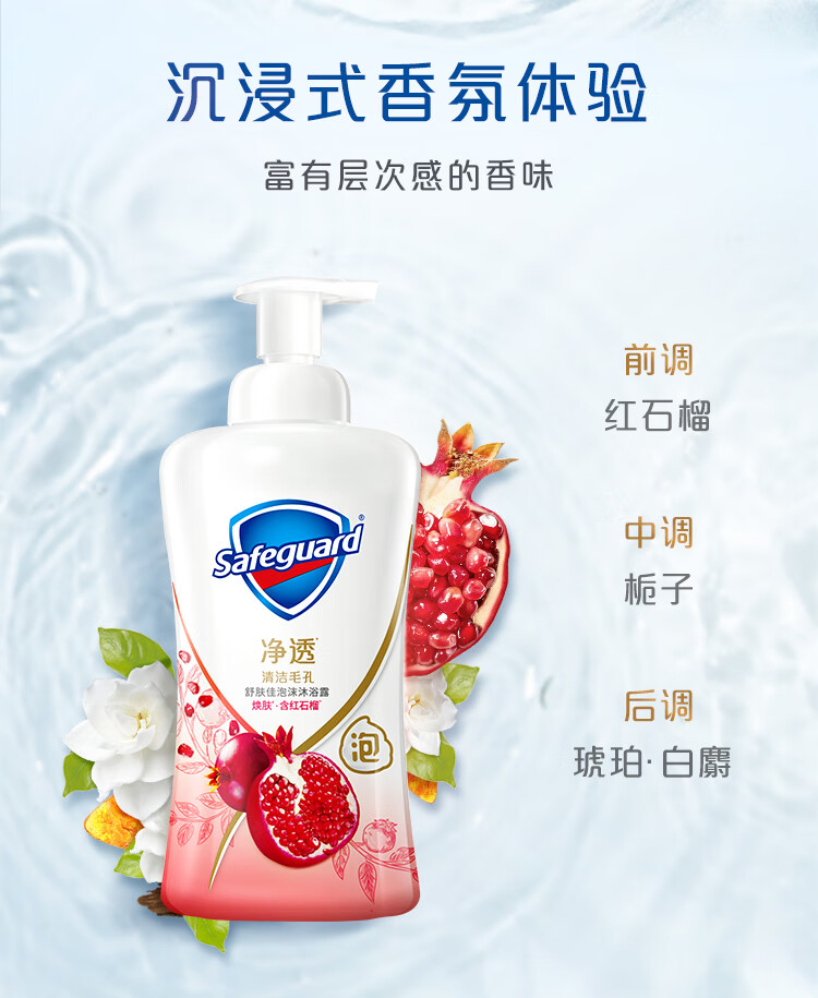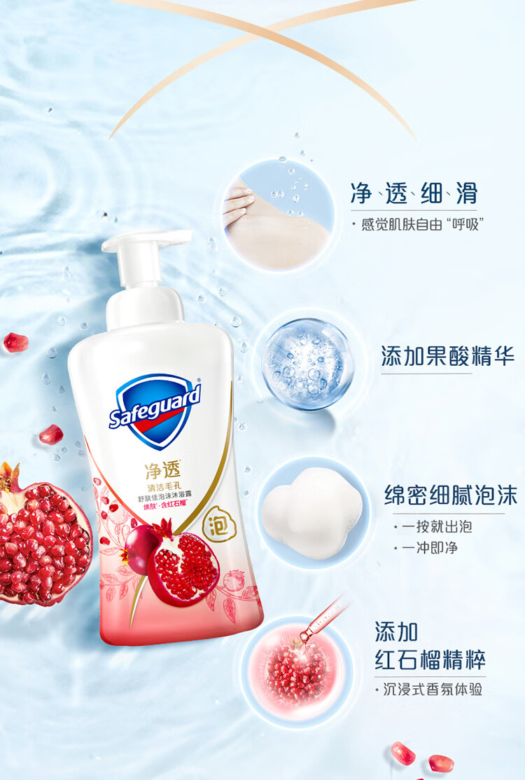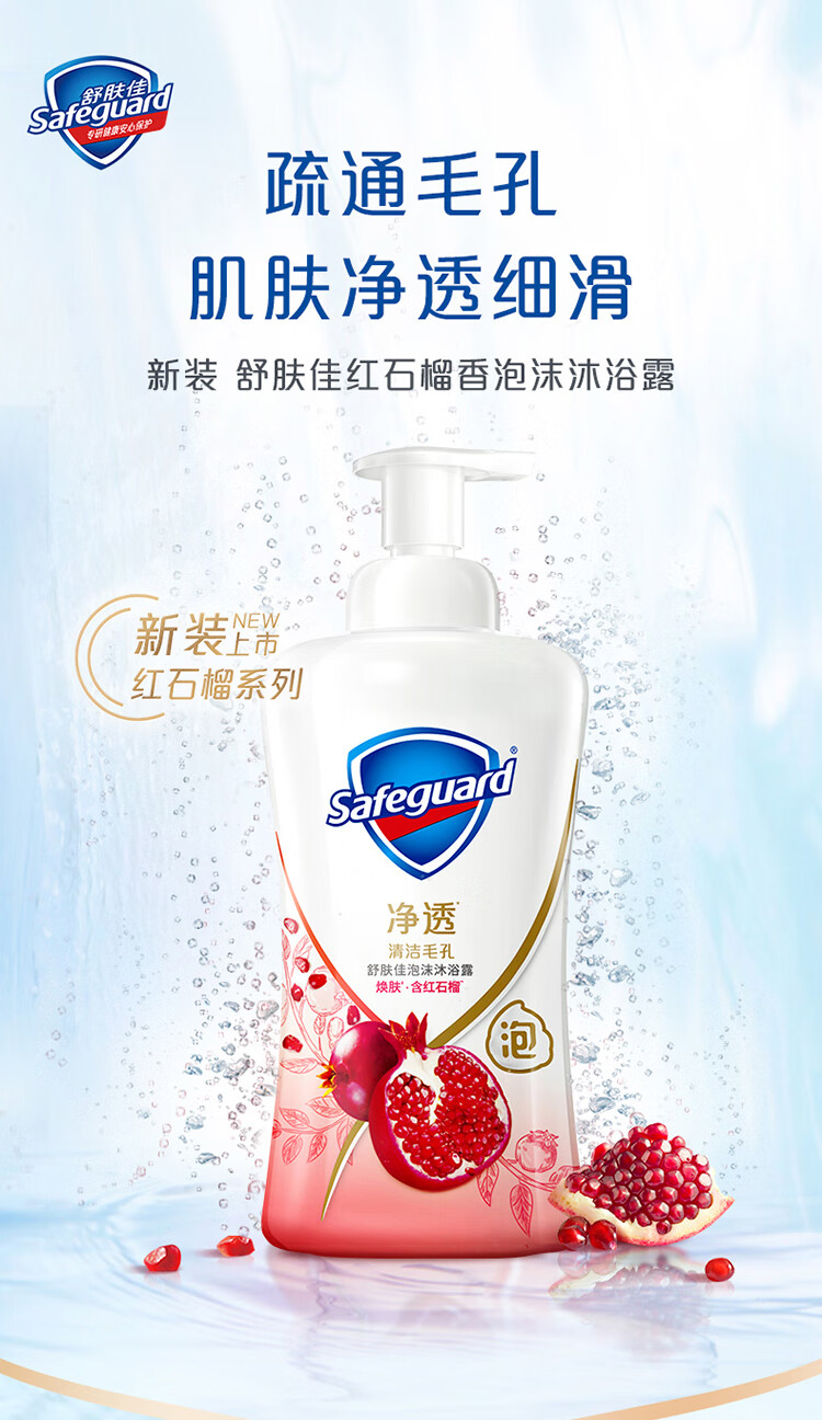 舒肤佳净透泡沫沐浴露红石榴香味500g 含果酸 男女士通用 新旧包装随机