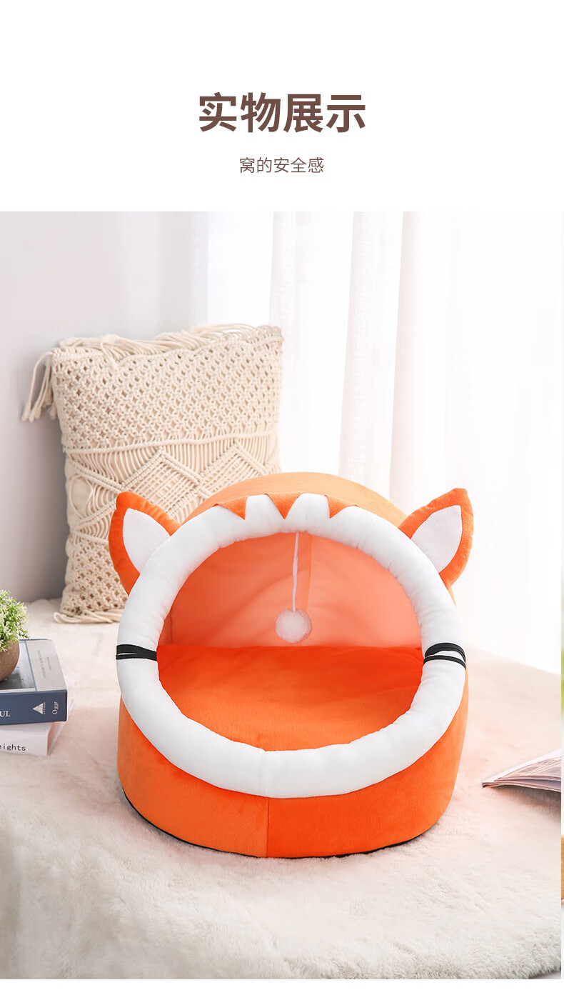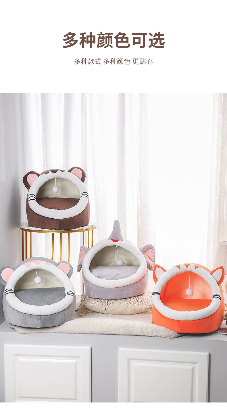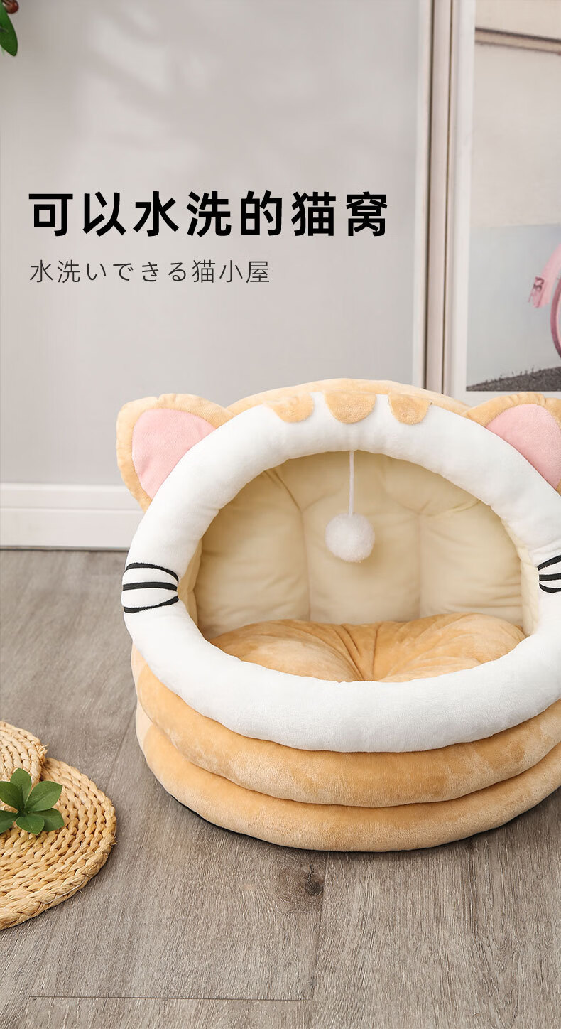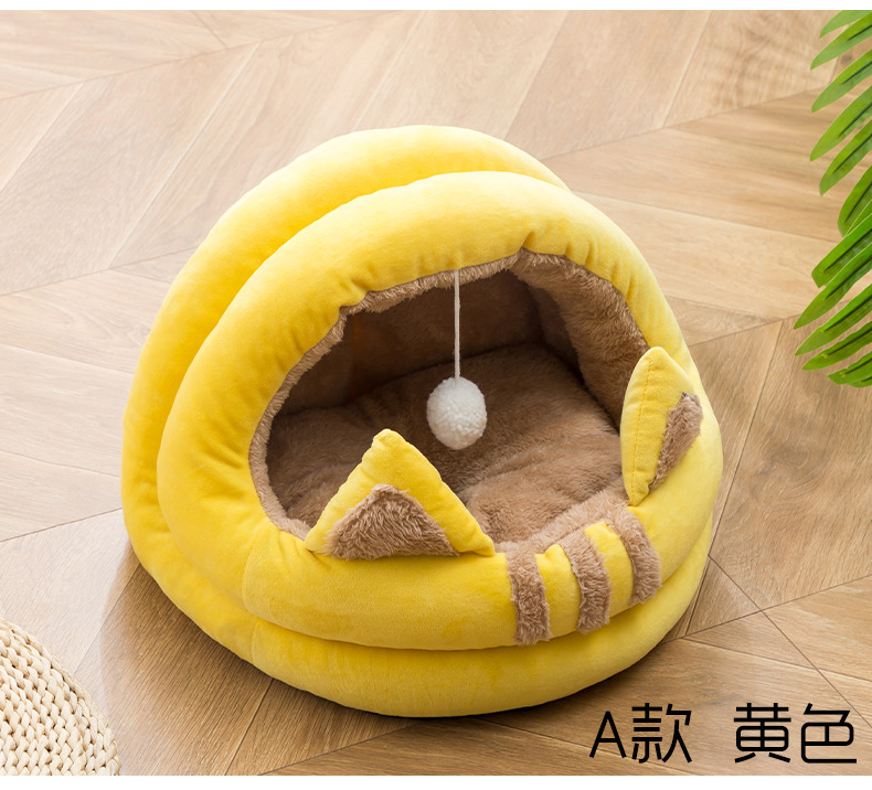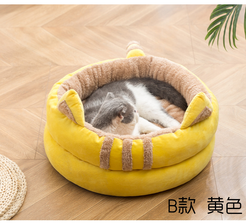 【熹宠】网红猫窝冬季保暖狗窝四季通用宠物幼猫幼犬中小型猫犬窝半封闭小猫床猫咪冬天用品A款半封闭式猫咪款-黄色 S(直径约33cm)建议1-7斤左右