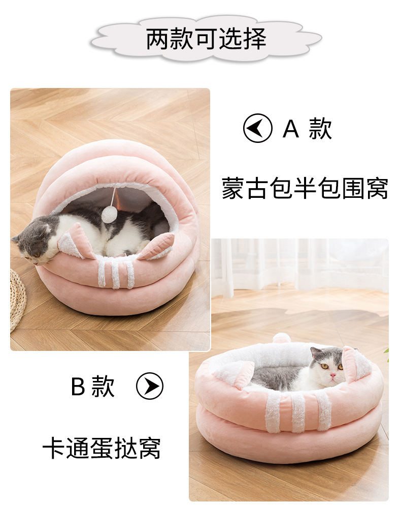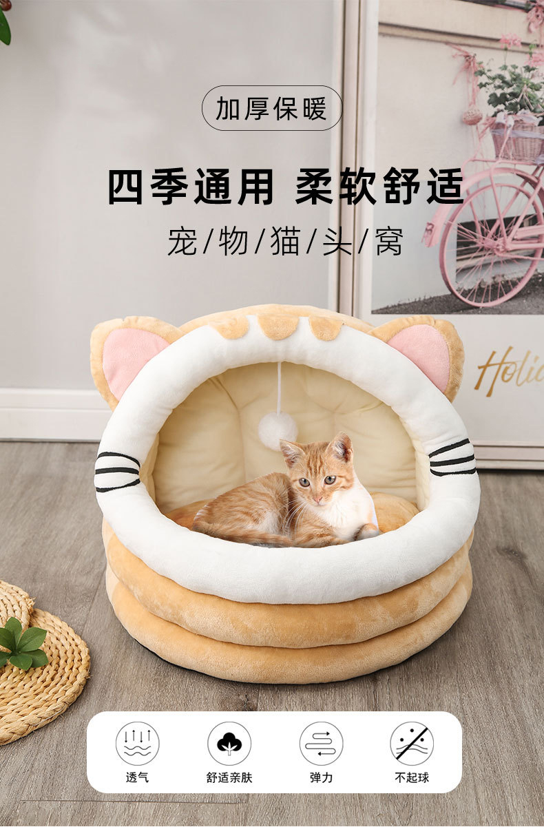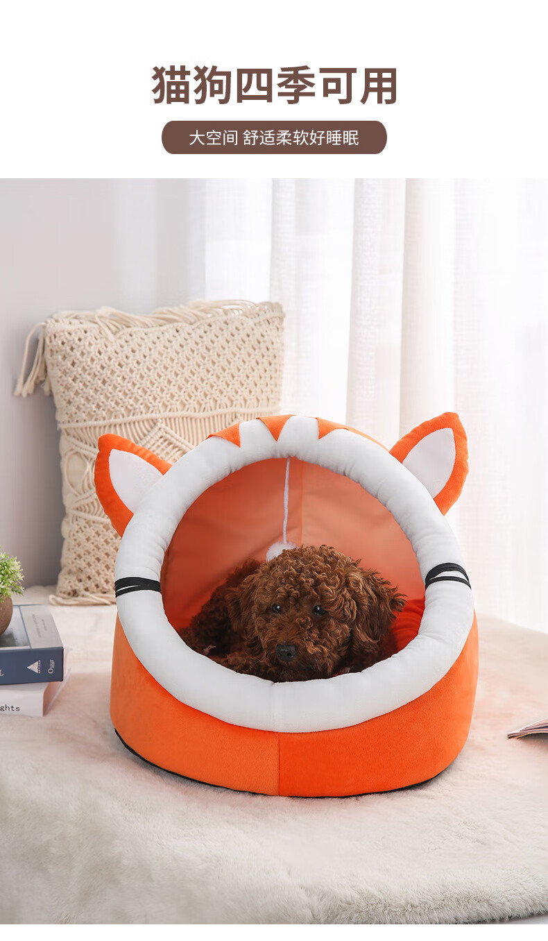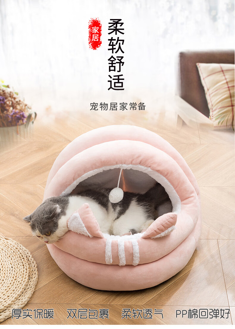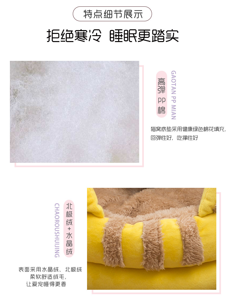 【熹宠】网红猫窝冬季保暖狗窝四季通用宠物幼猫幼犬中小型猫犬窝半封闭小猫床猫咪冬天用品A款半封闭式猫咪款-黄色 S(直径约33cm)建议1-7斤左右
