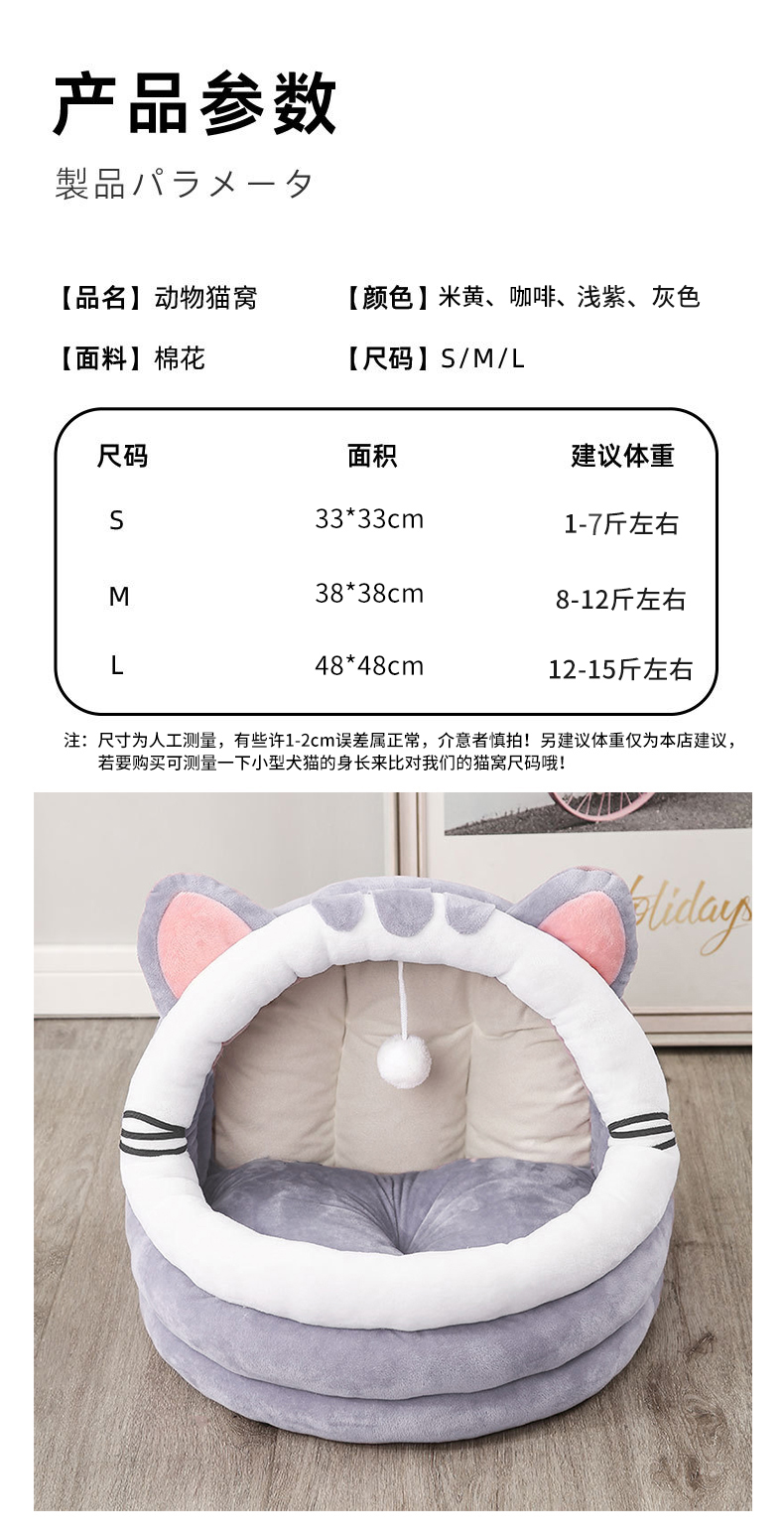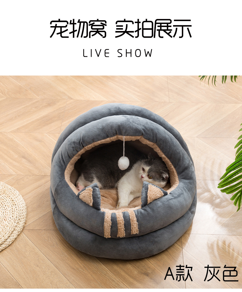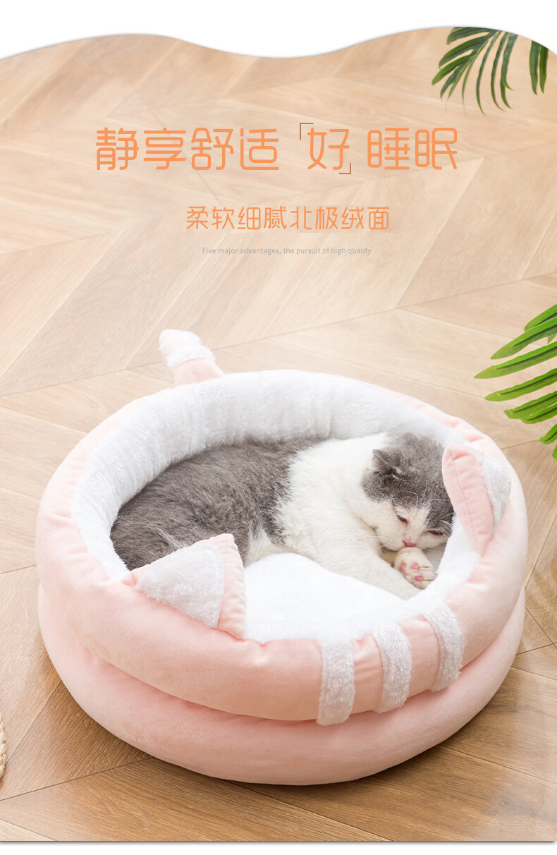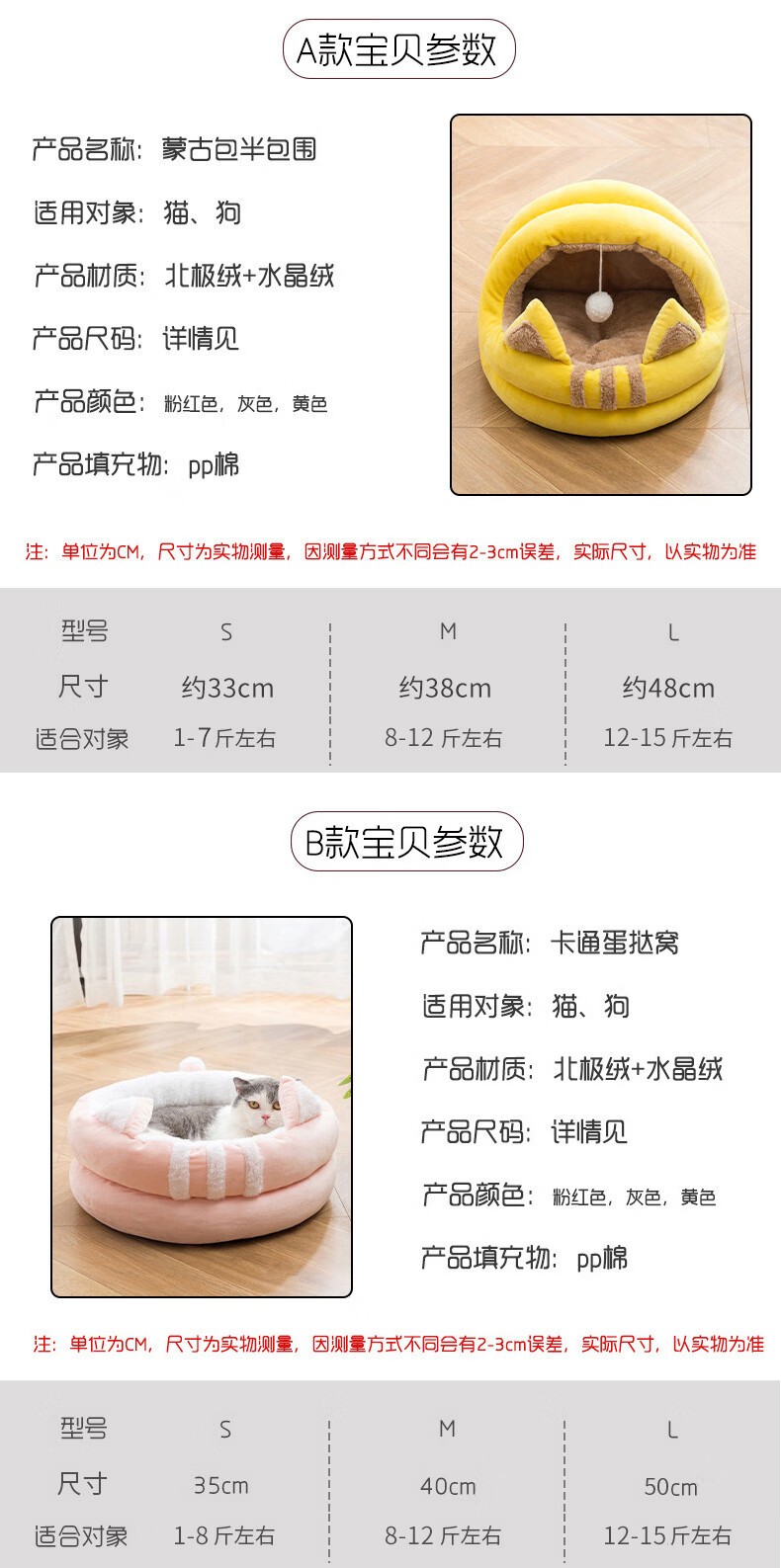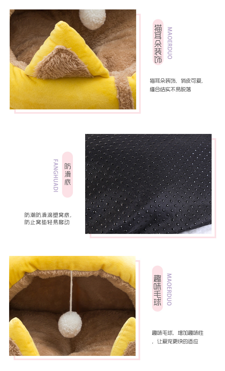 【熹宠】网红猫窝冬季保暖狗窝四季通用宠物幼猫幼犬中小型猫犬窝半封闭小猫床猫咪冬天用品A款半封闭式猫咪款-黄色 S(直径约33cm)建议1-7斤左右