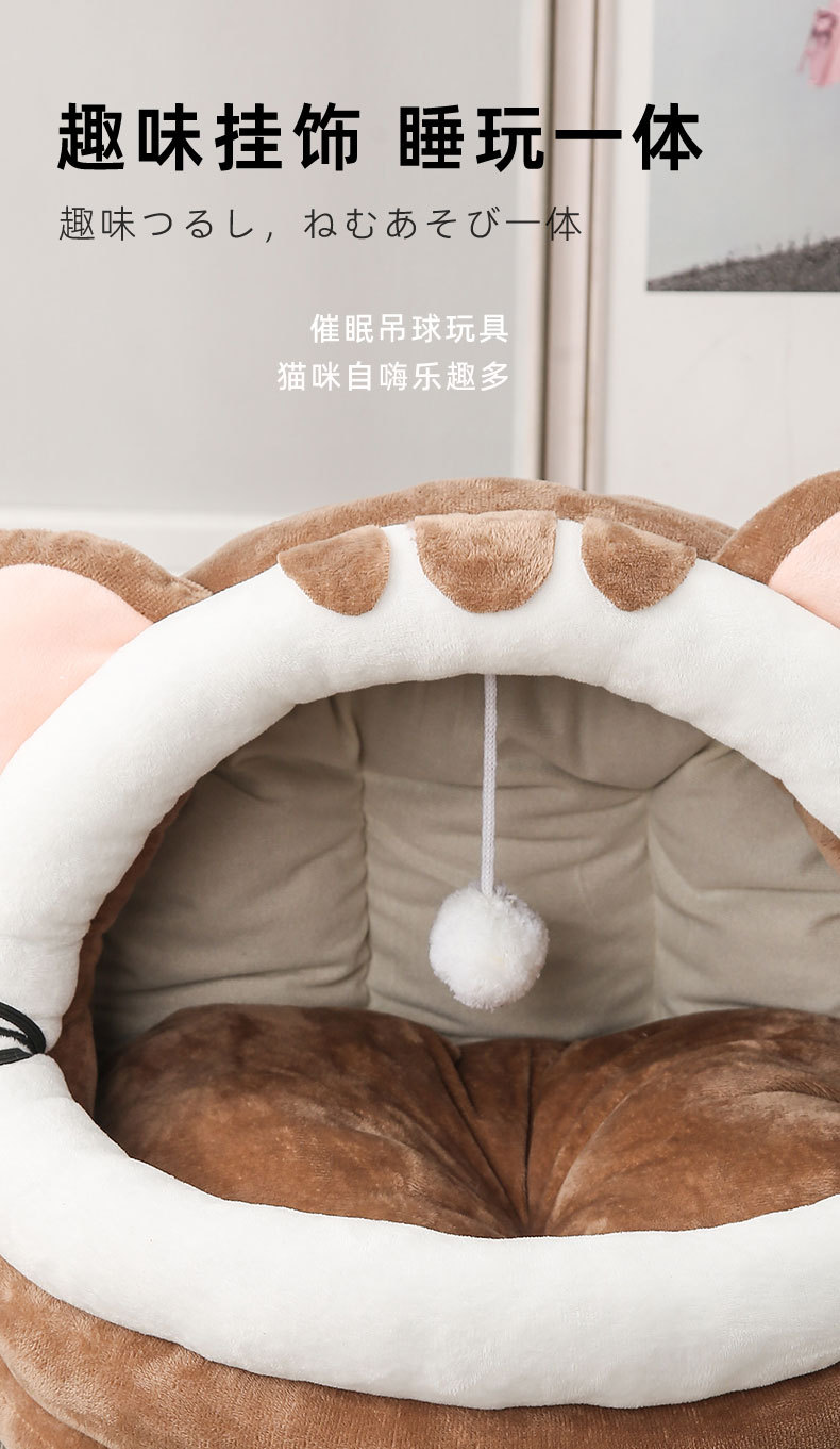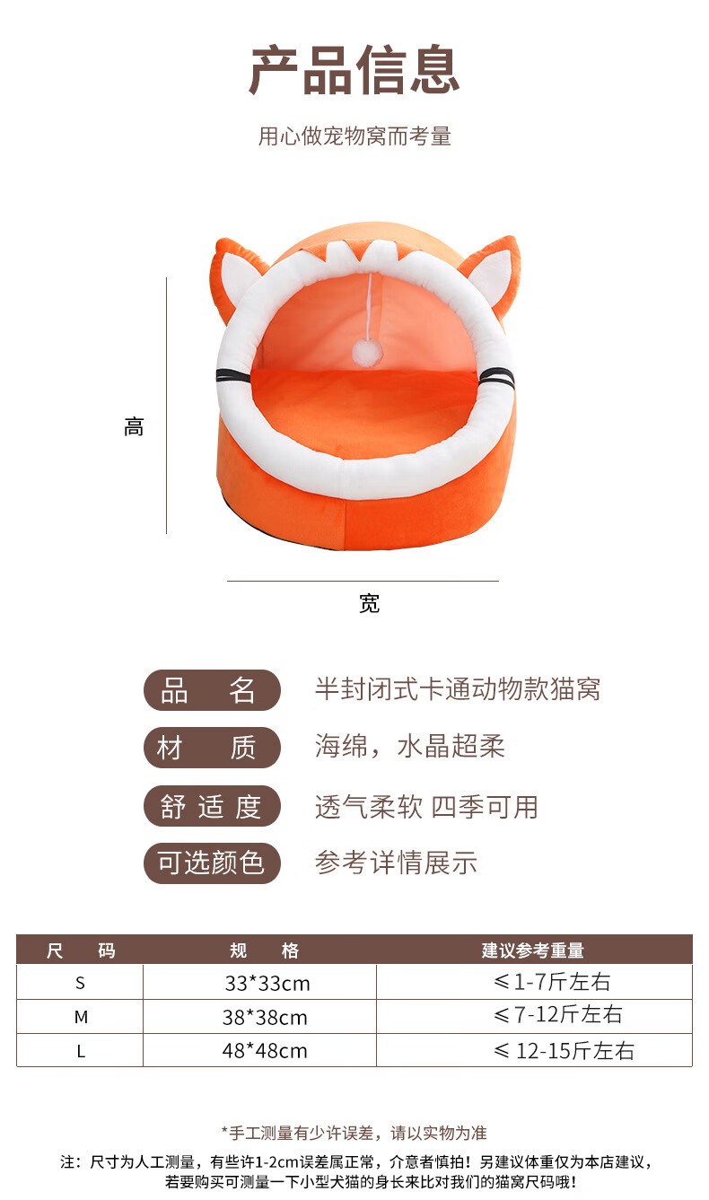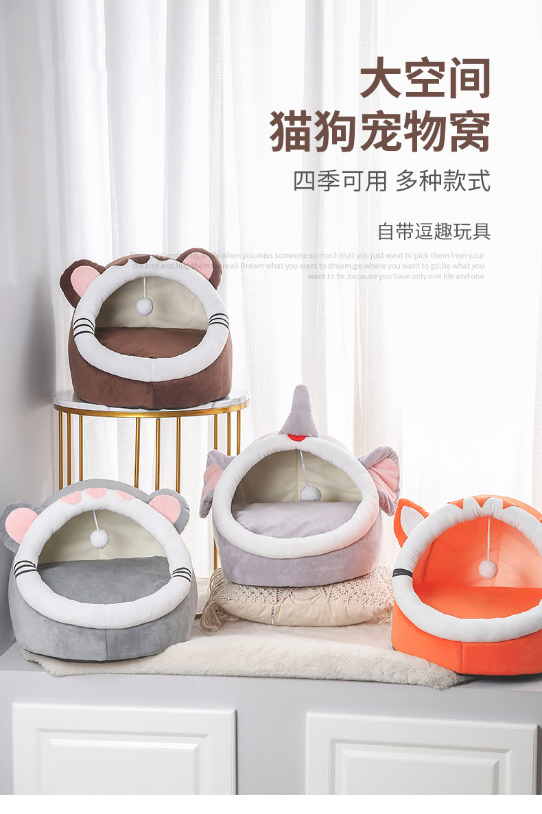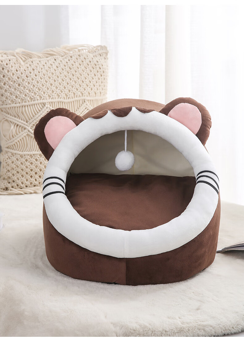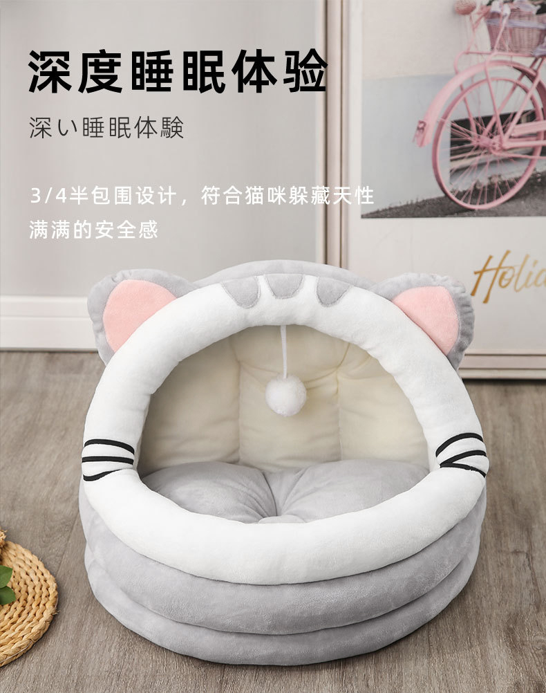 【熹宠】网红猫窝冬季保暖狗窝四季通用宠物幼猫幼犬中小型猫犬窝半封闭小猫床猫咪冬天用品A款半封闭式猫咪款-黄色 S(直径约33cm)建议1-7斤左右