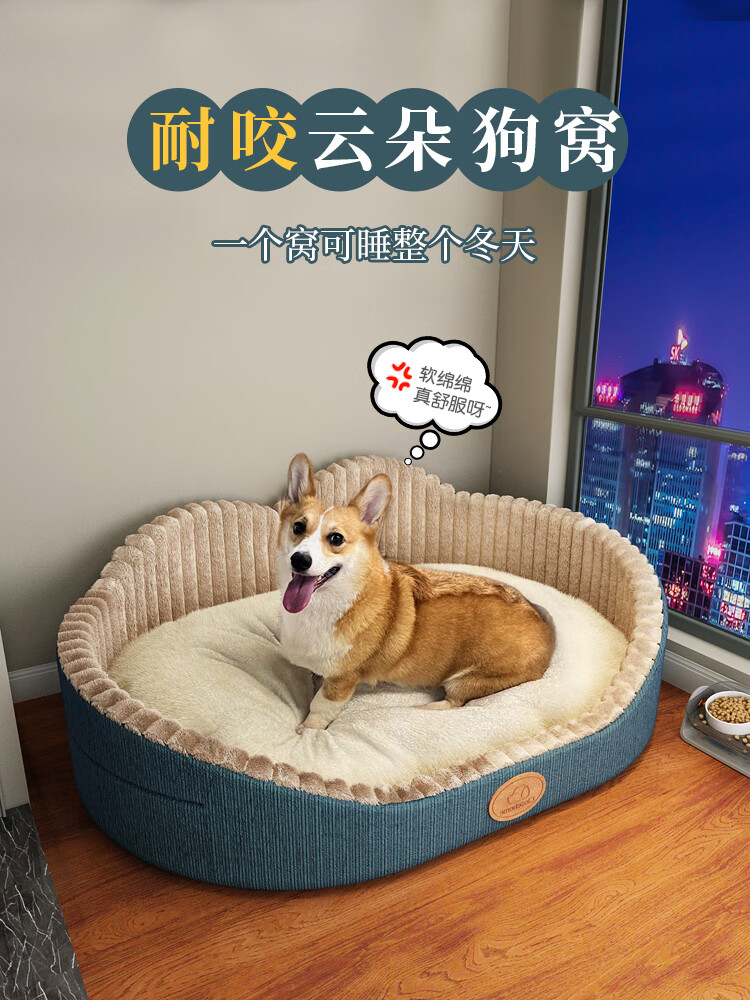 宠趣汇狗窝小型犬中型犬秋冬季保暖狗窝四季通用可拆洗巨大狗垫子睡觉猫窝宠物泰迪法斗冬天耐咬狗窝小号宝蓝色(可水洗狗窝_保暖棉垫)建议10斤内