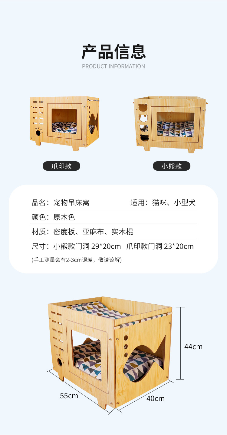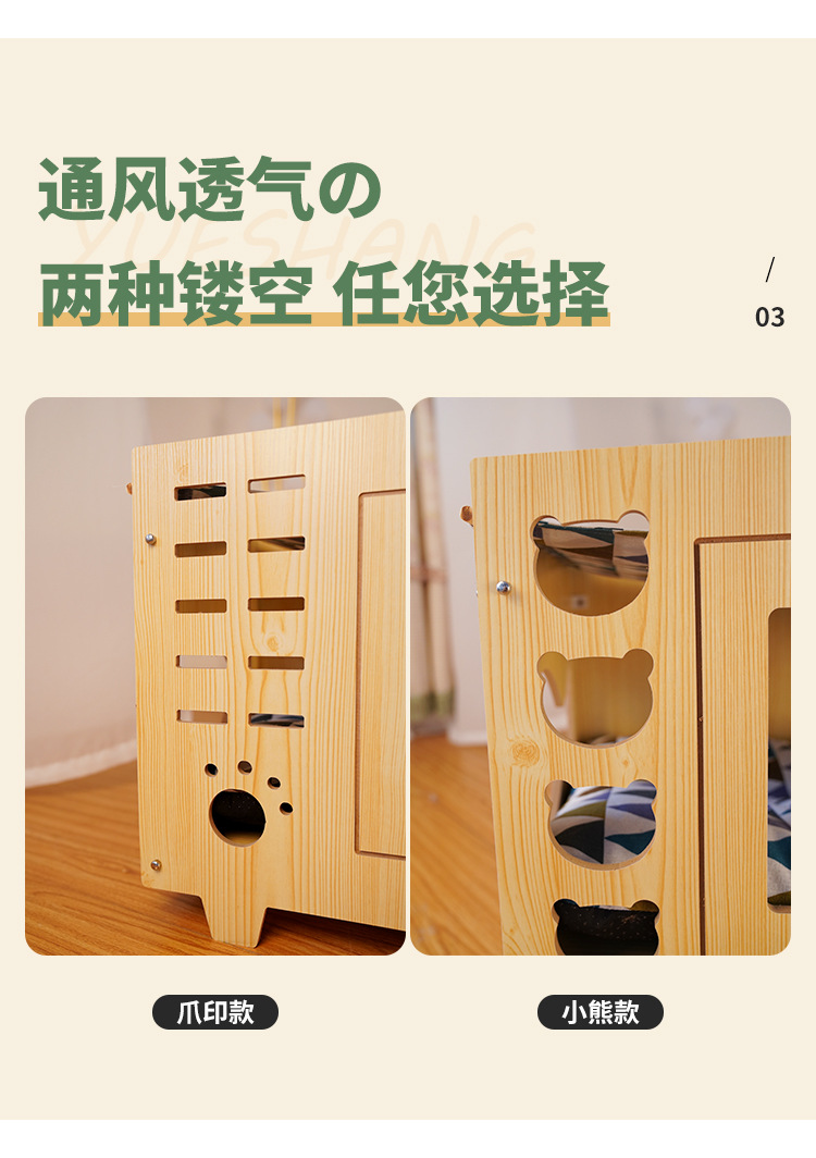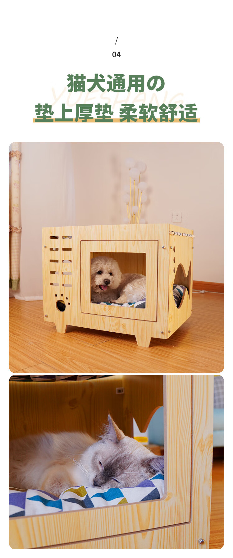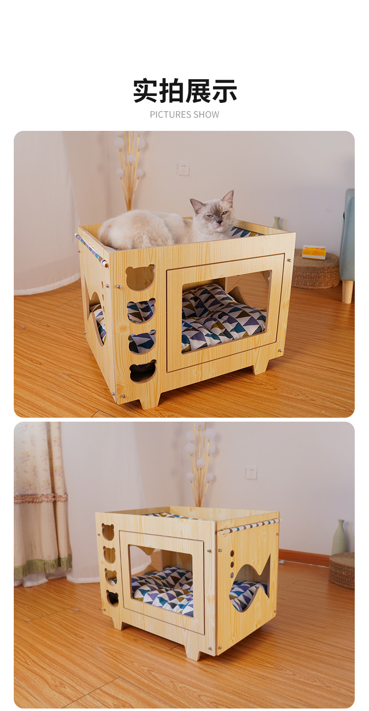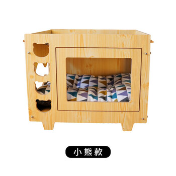 ROIFR猫窝幼猫冬季保暖狗窝房子木质猫狗窝猫床猫舍泰迪小型犬狗狗猫咪用品宠物窝小熊款【上新促销】 约长55*宽40*高44cm