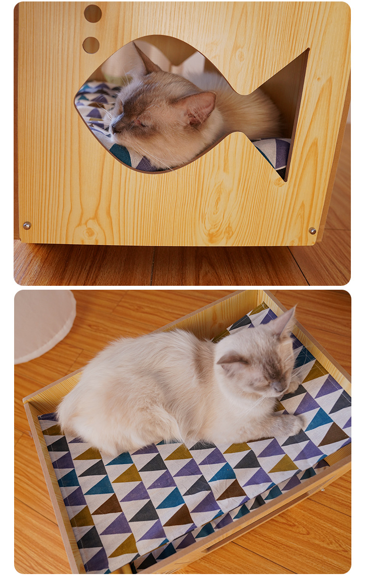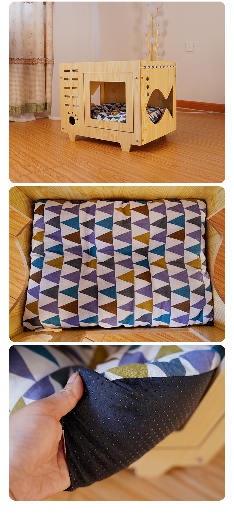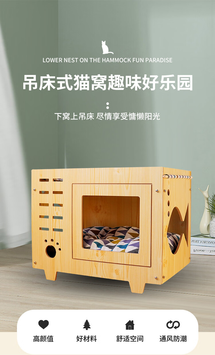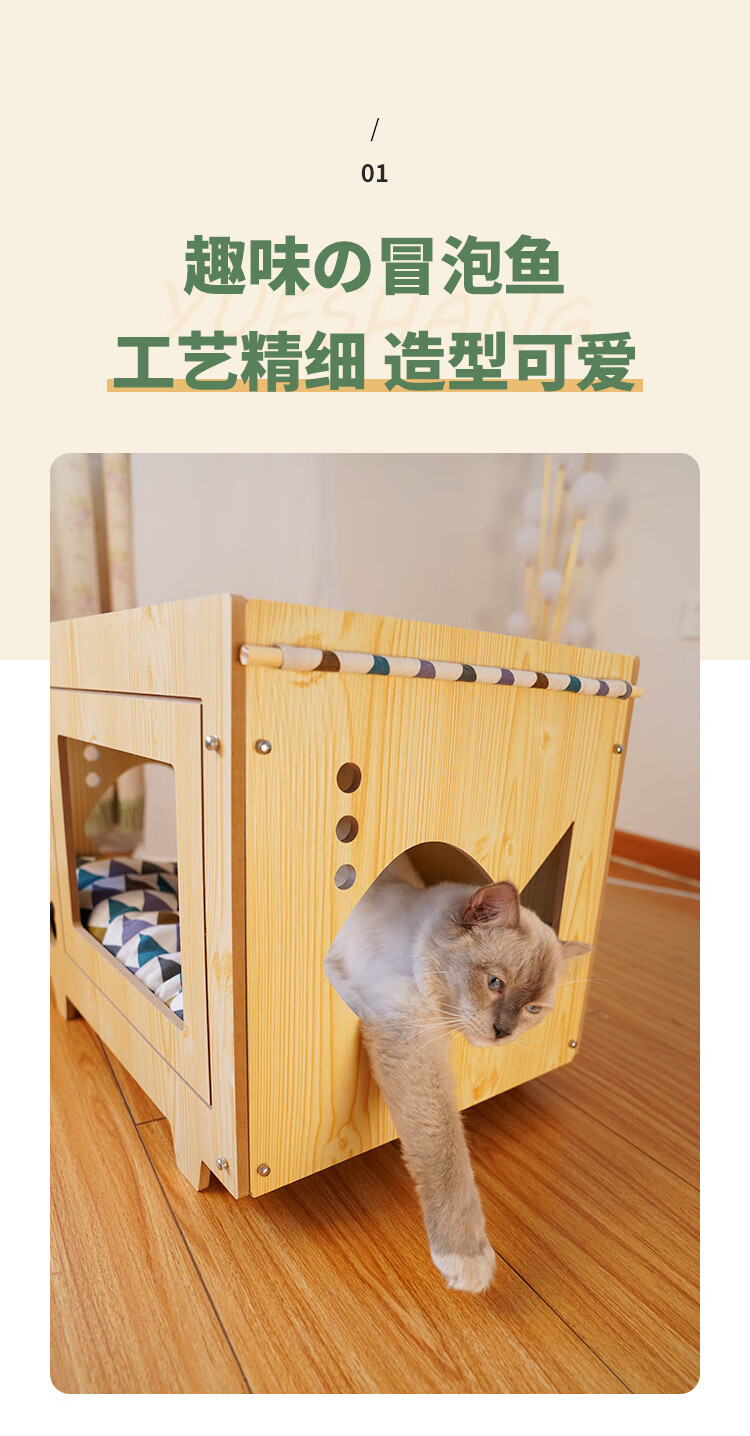 ROIFR猫窝幼猫冬季保暖狗窝房子木质猫狗窝猫床猫舍泰迪小型犬狗狗猫咪用品宠物窝小熊款【上新促销】 约长55*宽40*高44cm
