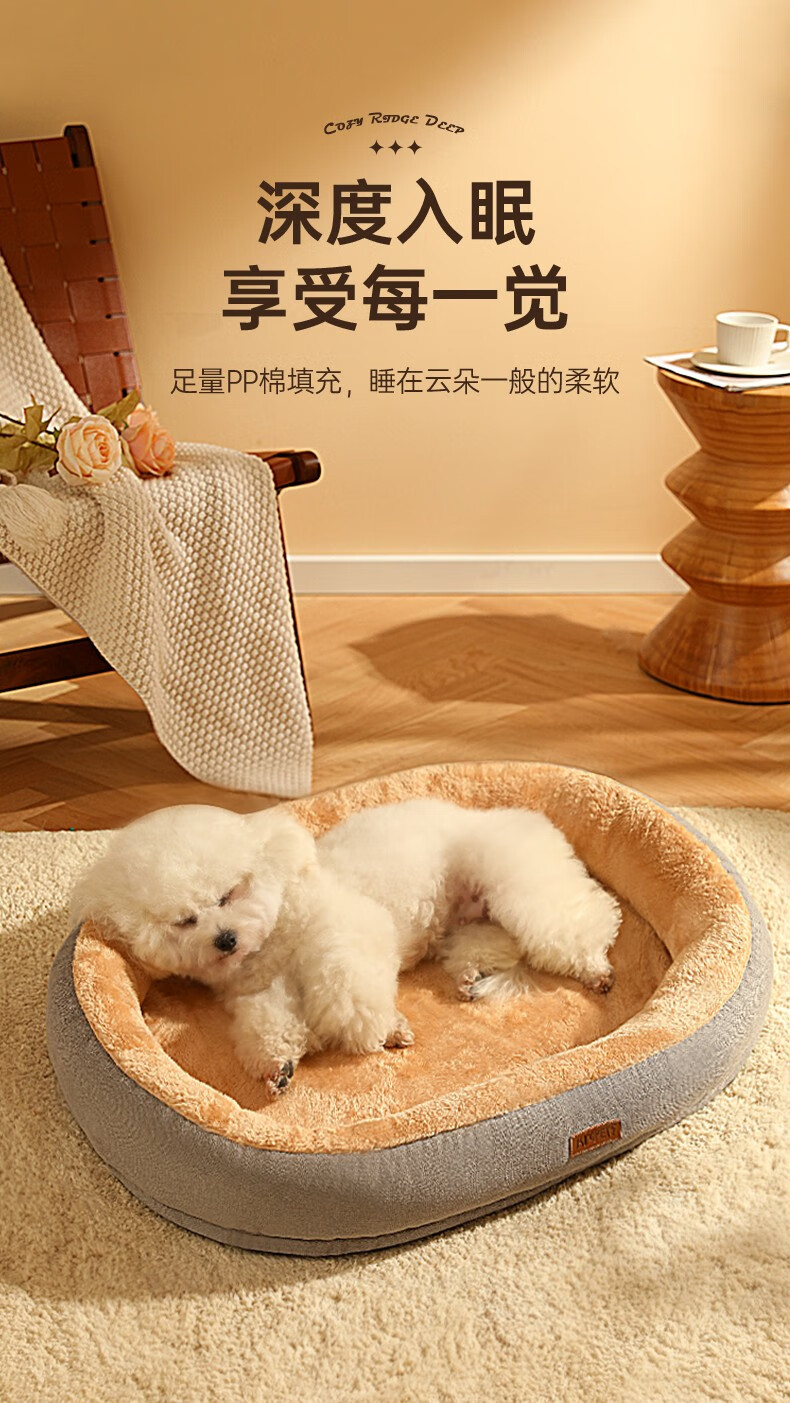 KimPets狗窝四季通用冬季保暖睡觉用狗垫子可拆洗猫床宠物床柯基泰迪用品 【浅灰色】升级高边加厚款保暖窝 L【尺寸60*45cm】(建议15斤内宠物)