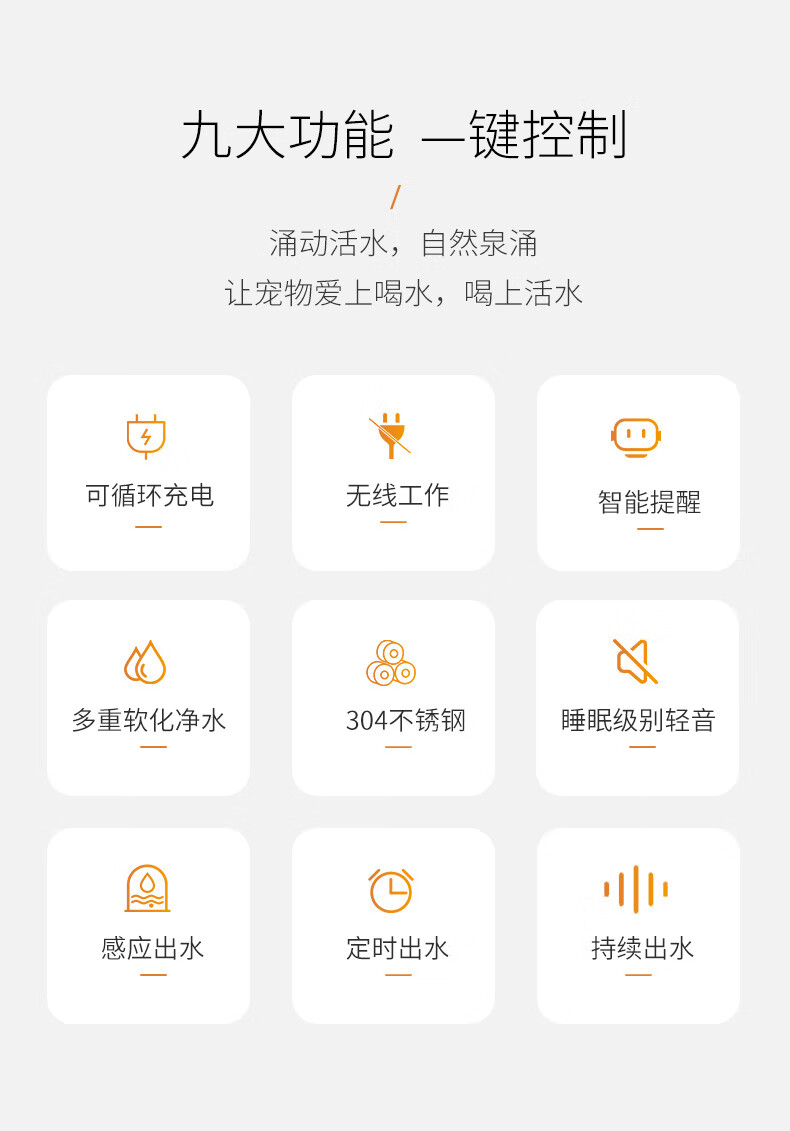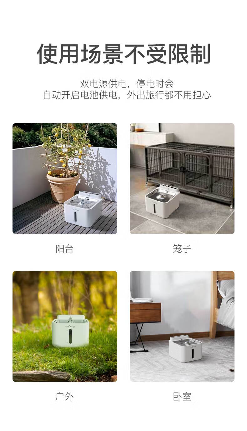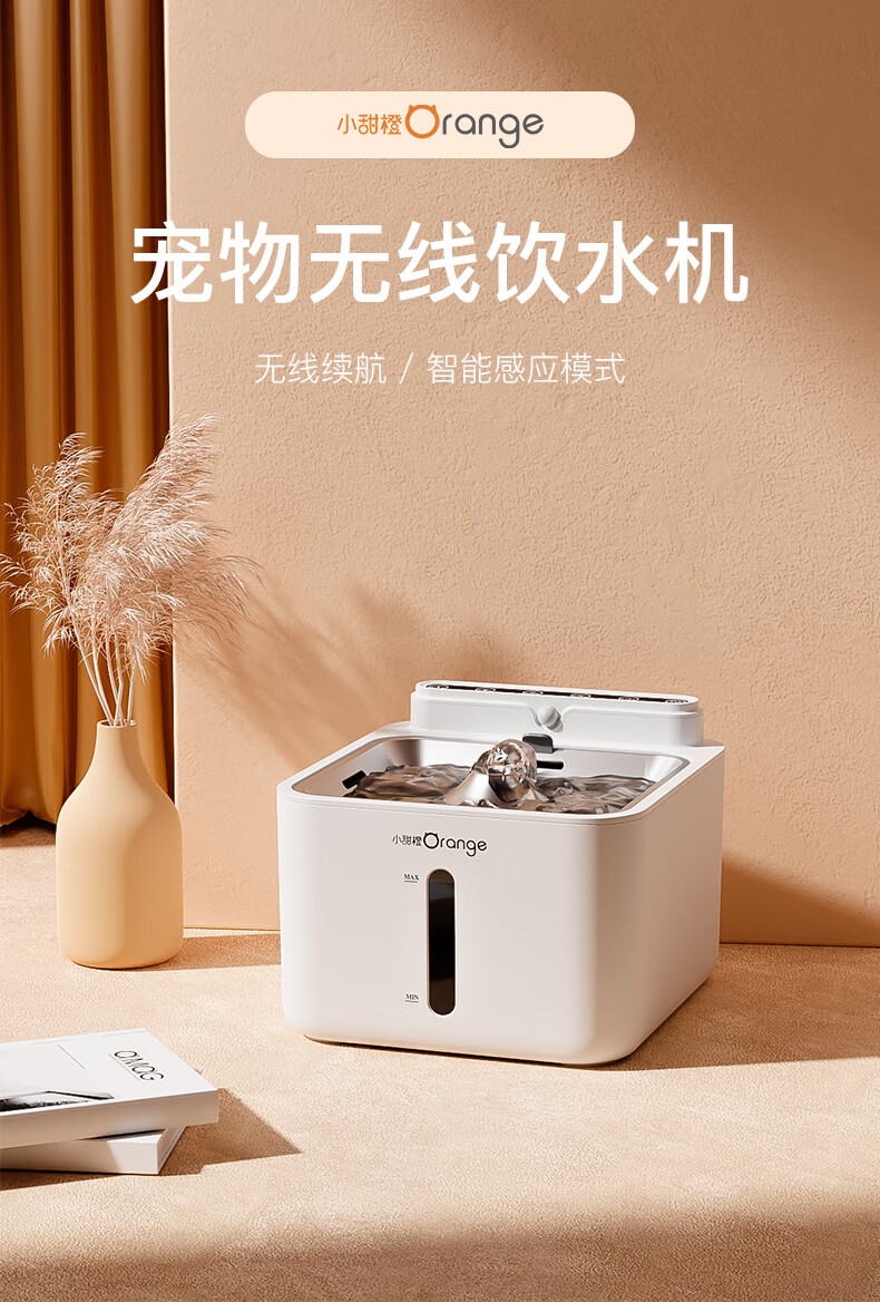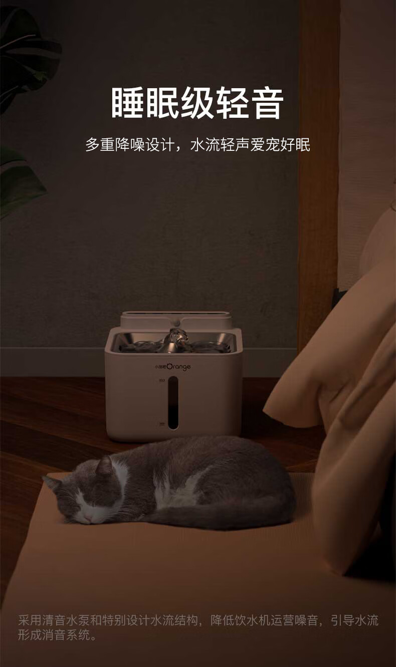 小甜橙猫咪饮水机不插电流动喝水宠物自动饮水器狗狗活水智能循环充电可移动恒温加热饮水机猫无线不插电/2600毫安,续航30天,贝曾3滤芯