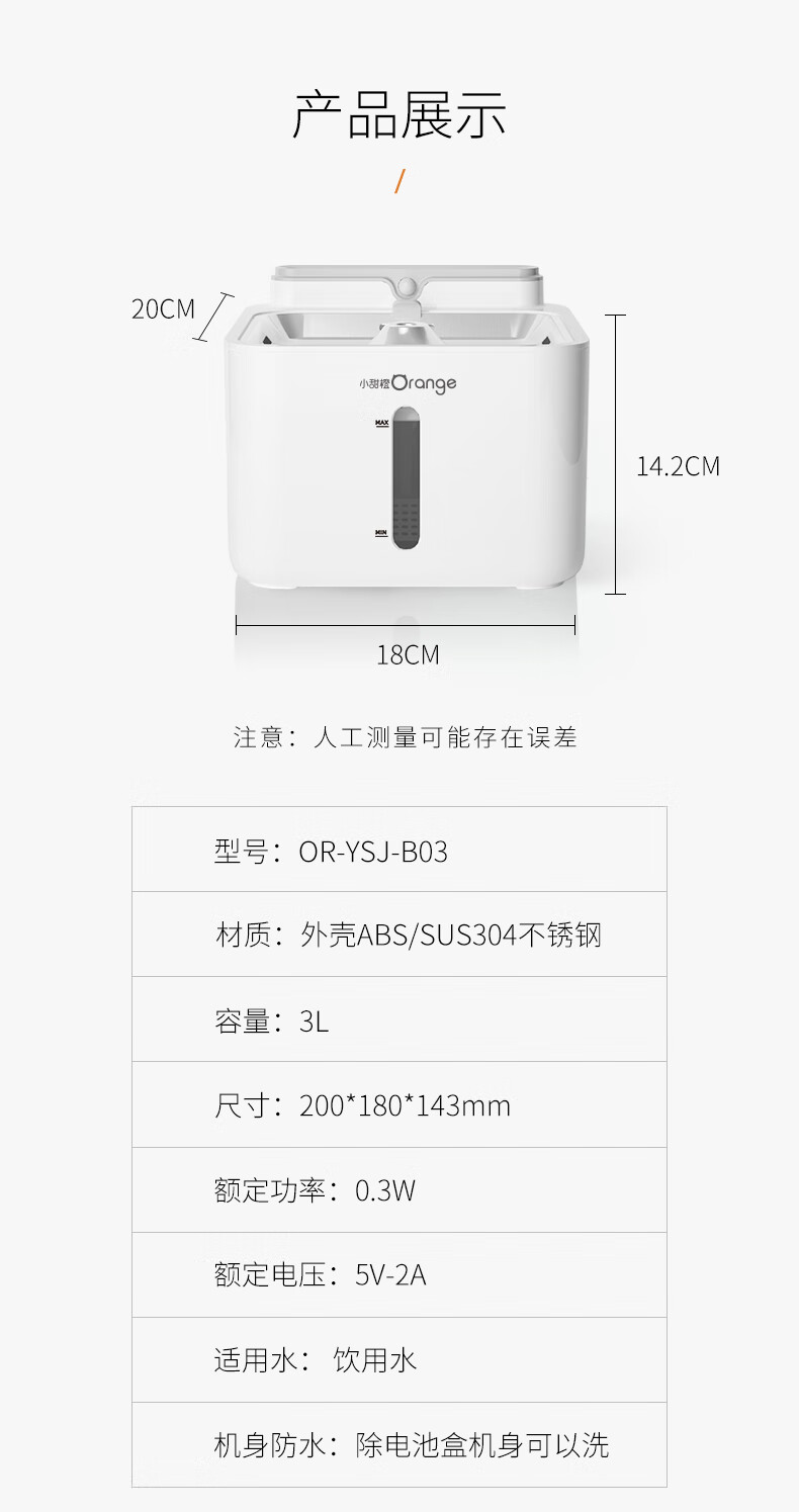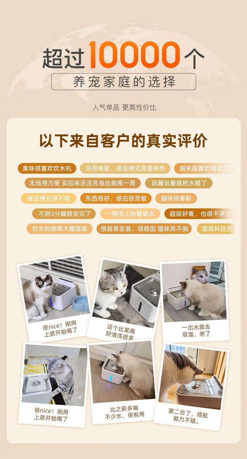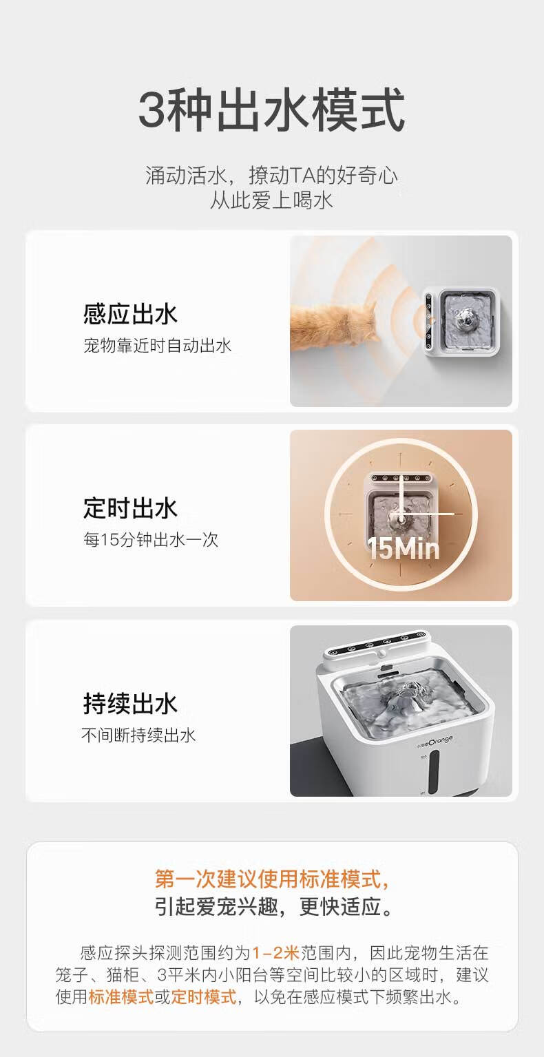 小甜橙猫咪饮水机不插电流动喝水宠物自动饮水器狗狗活水智能循环充电可移动恒温加热饮水机猫无线不插电/2600毫安,续航30天,贝曾3滤芯