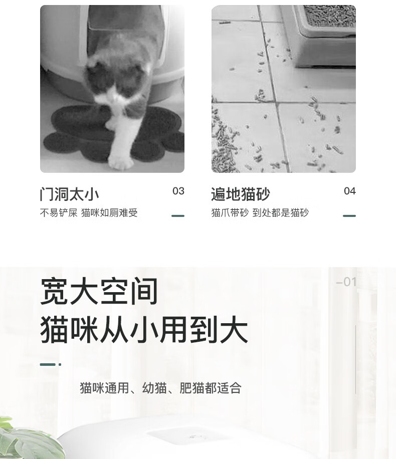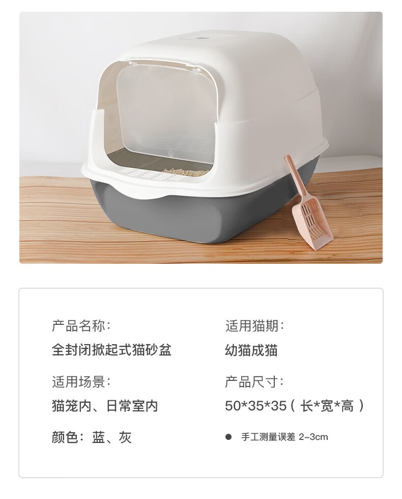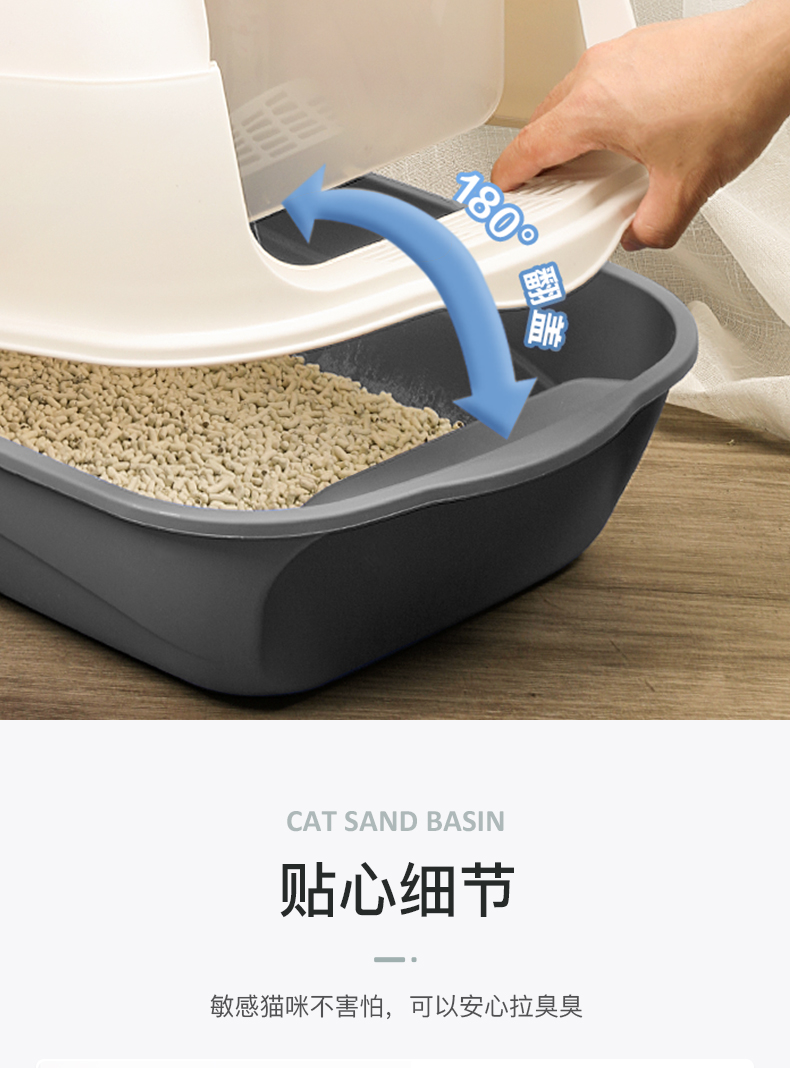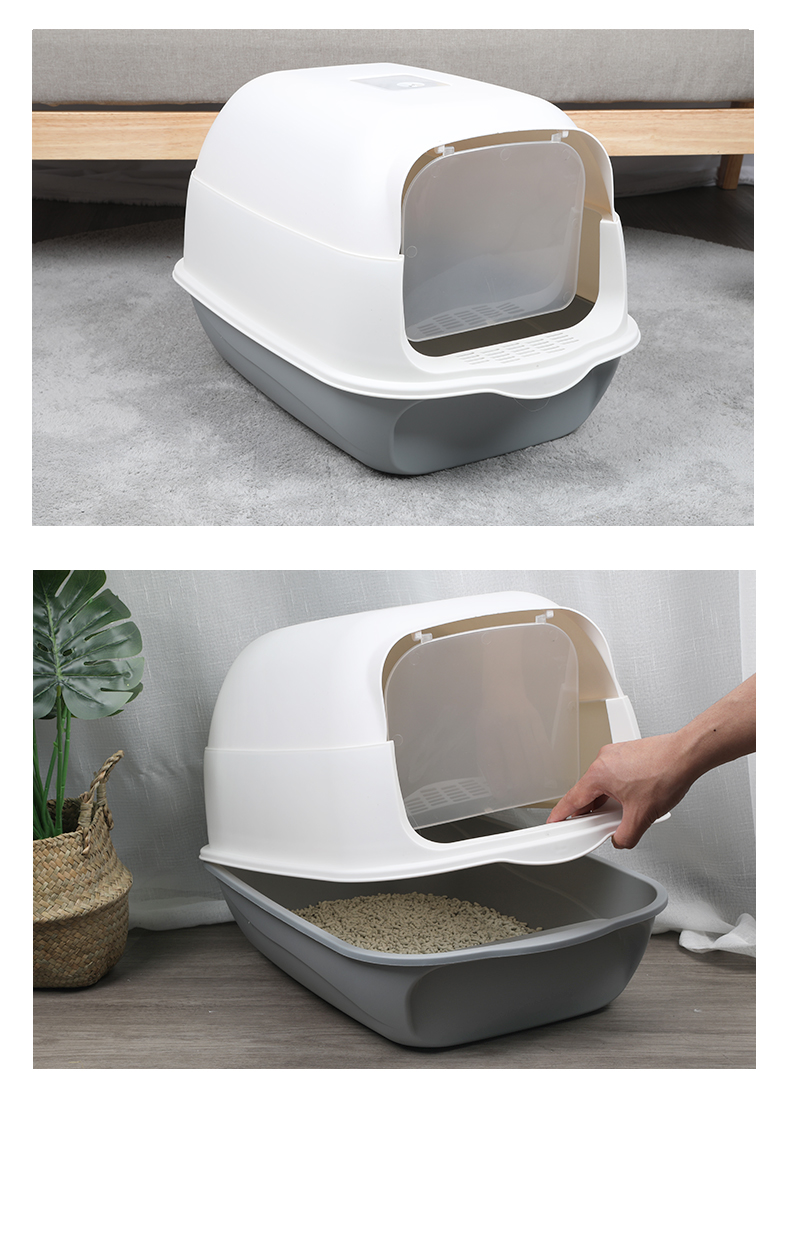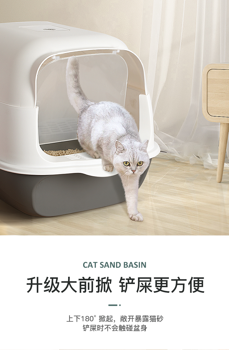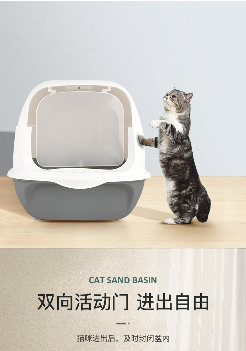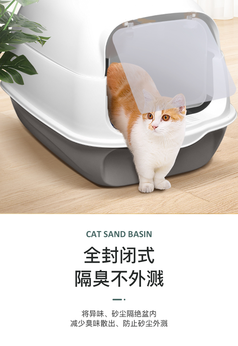 HELLOJOY猫砂盆全封闭防外溅猫厕所幼猫成猫大号猫屎盆封闭式猫沙盆猫便盆含猫砂铲去味包猫咪用品 气质灰