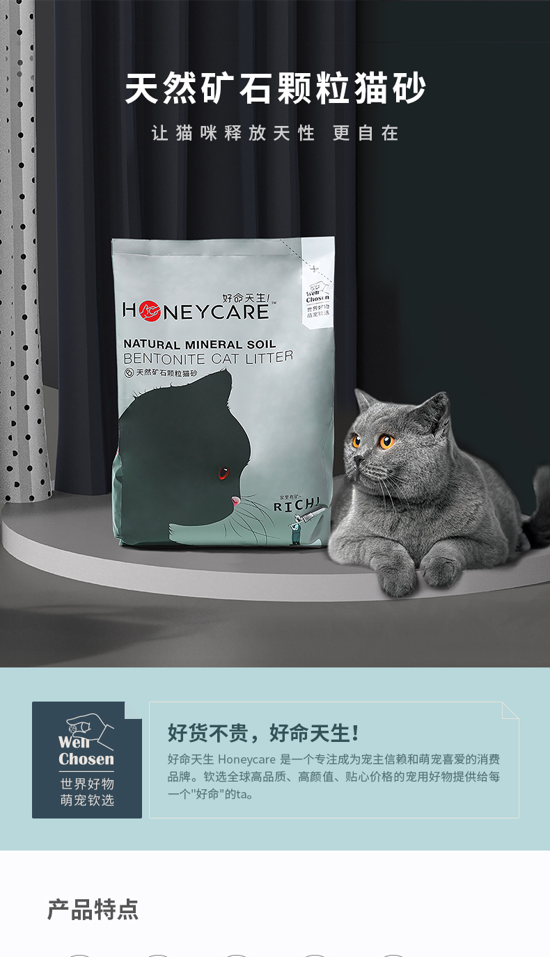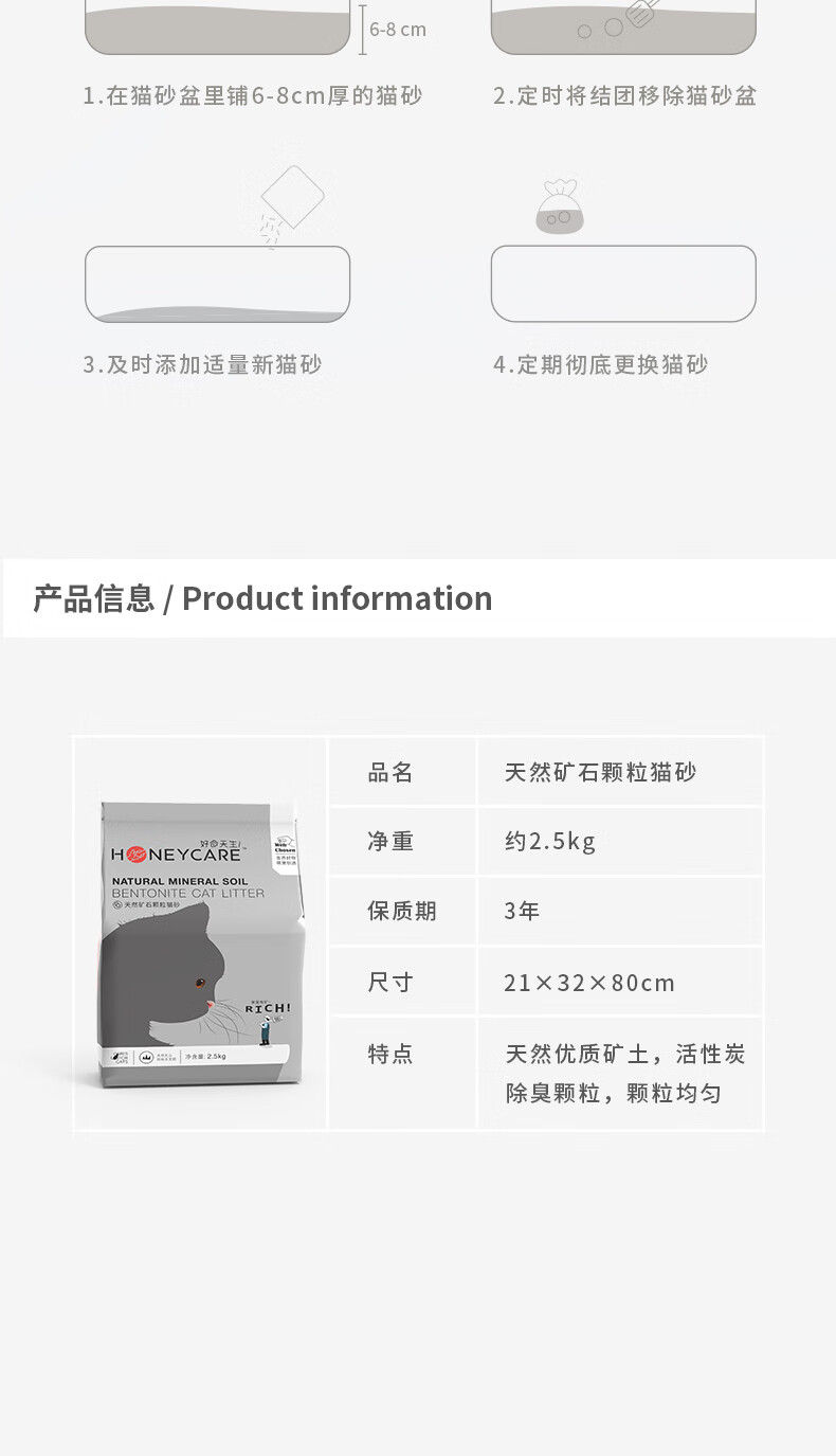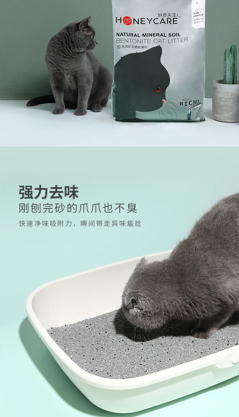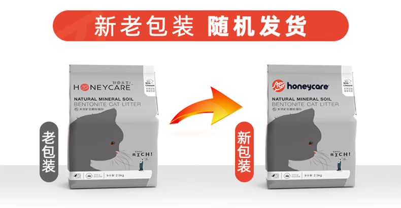 【11.11预售】Honeycare(好命天生)膨润土猫砂天然矿石除臭结团无尘猫沙 干垃圾分类猫砂 【预售】矿石猫砂2.5kg*8袋 膨润土