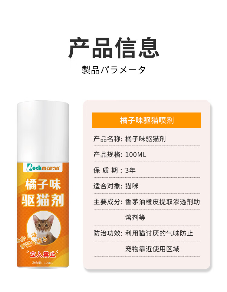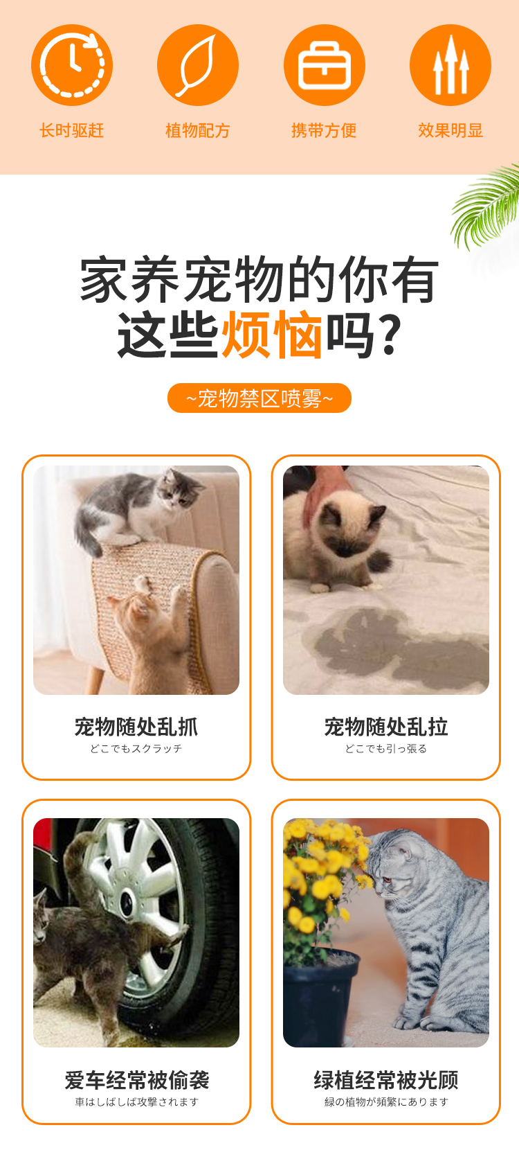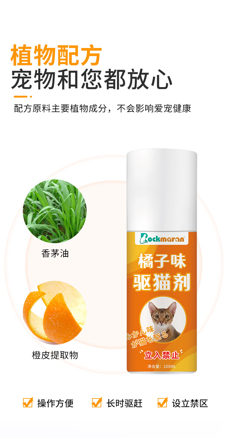 Rockmaran驱猫喷雾防止猫咪上床禁区乱撒尿神器橘子味喷雾驱猫神器驱猫水剂猫讨厌的味道 1瓶橘子味驱猫剂