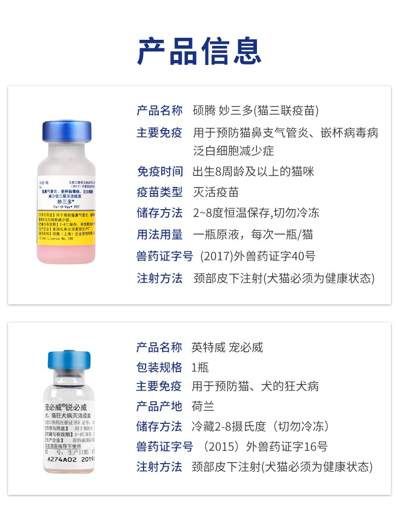 【顺丰冰运】妙三多疫苗猫三联猫咪猫用狂犬幼猫成猫初次接种套餐【成猫套餐】1妙三多 狂犬