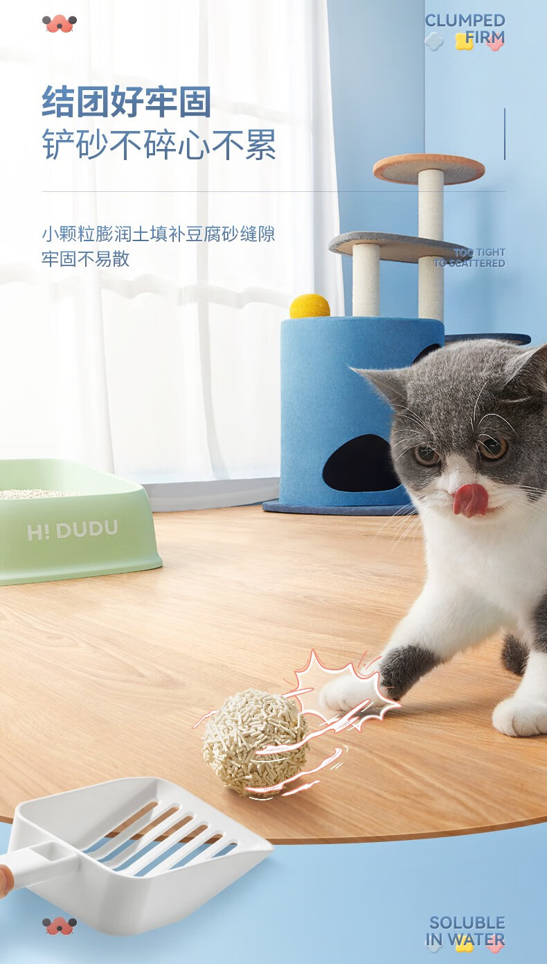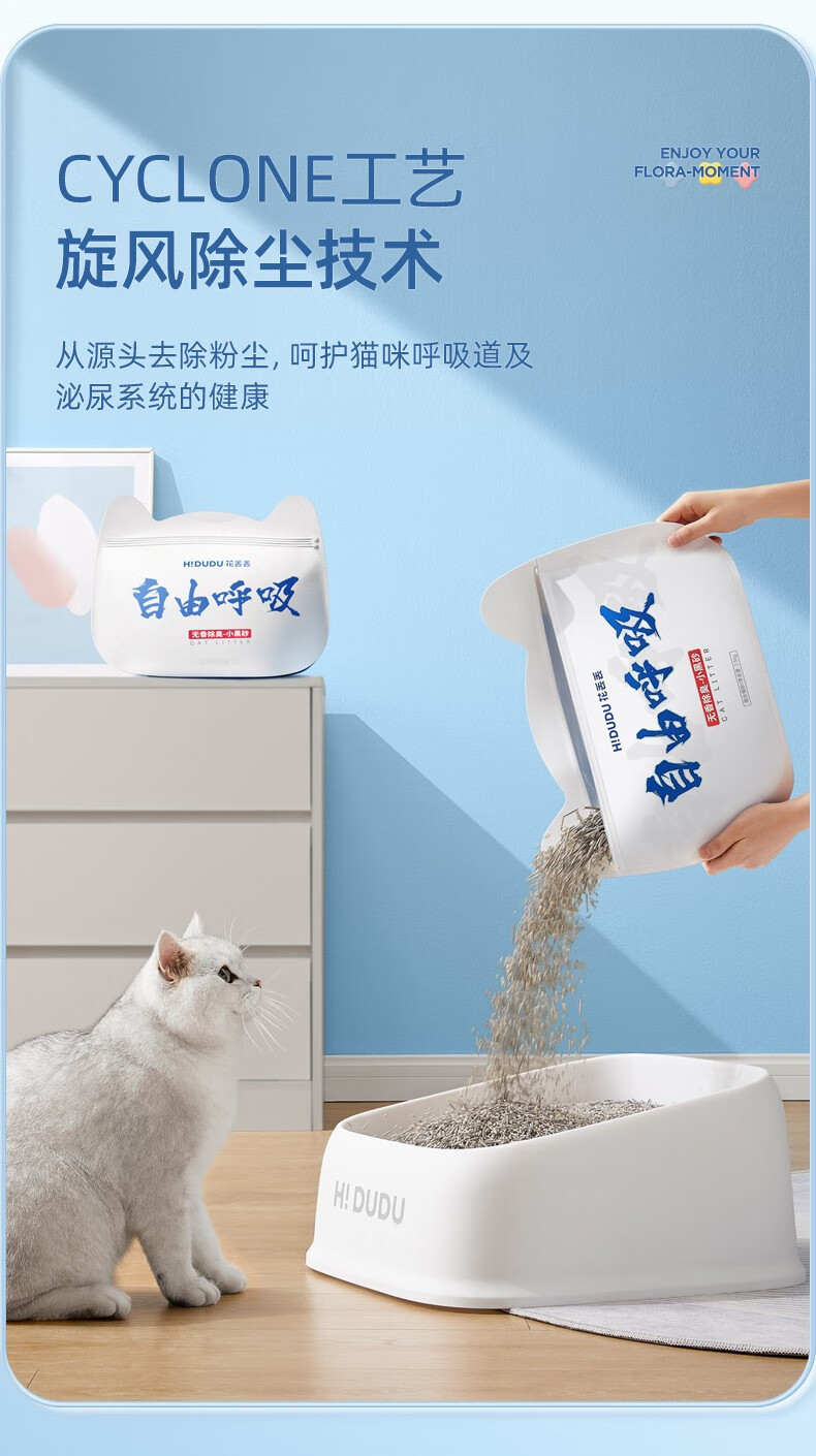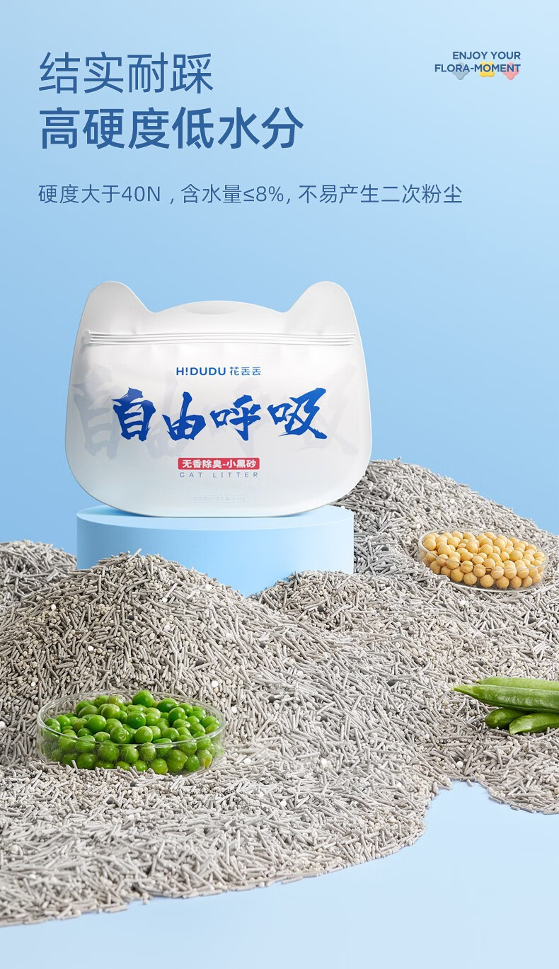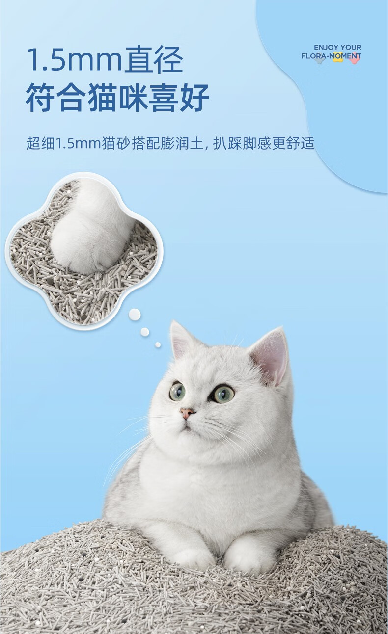 花丢丢1.5mm混合猫砂豆腐除臭无尘幼猫可冲厕所马桶猫咪用品混然天成丨小白砂【1包/2.5kg】