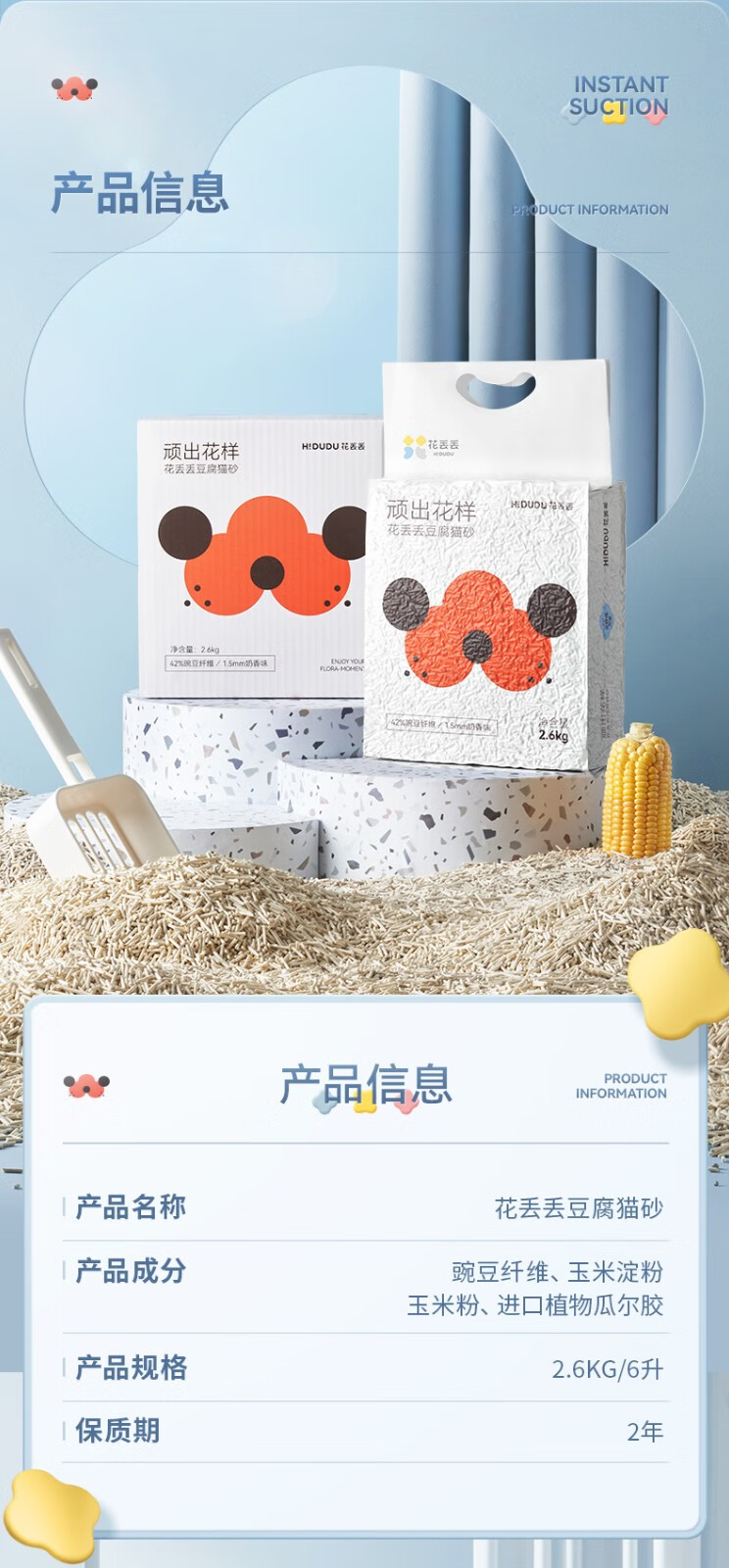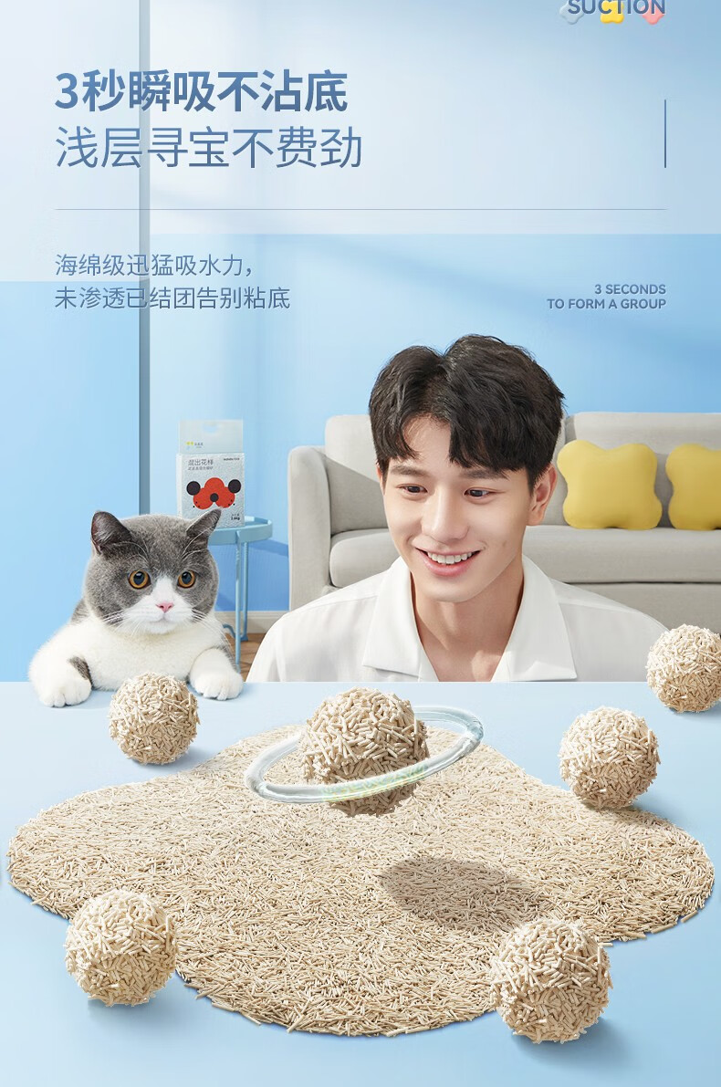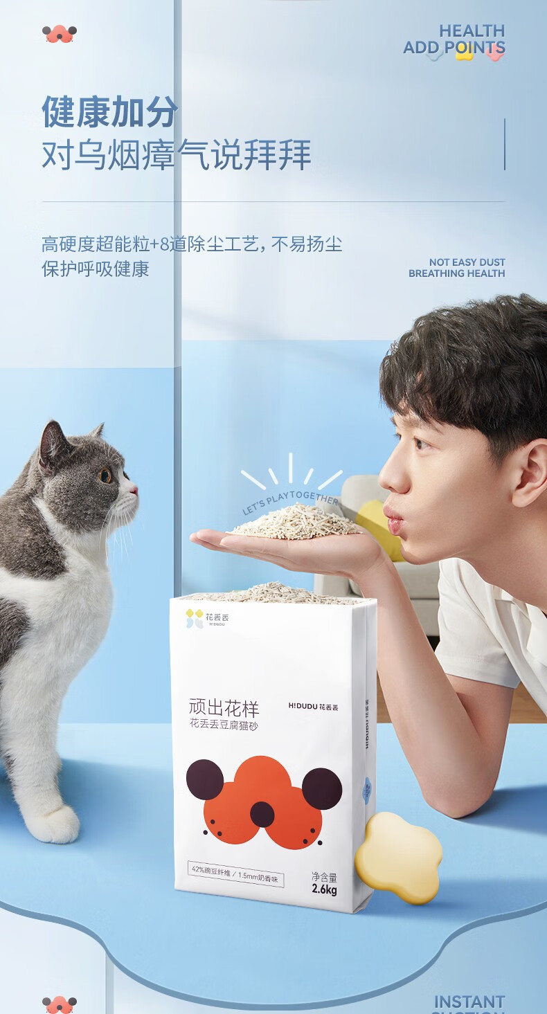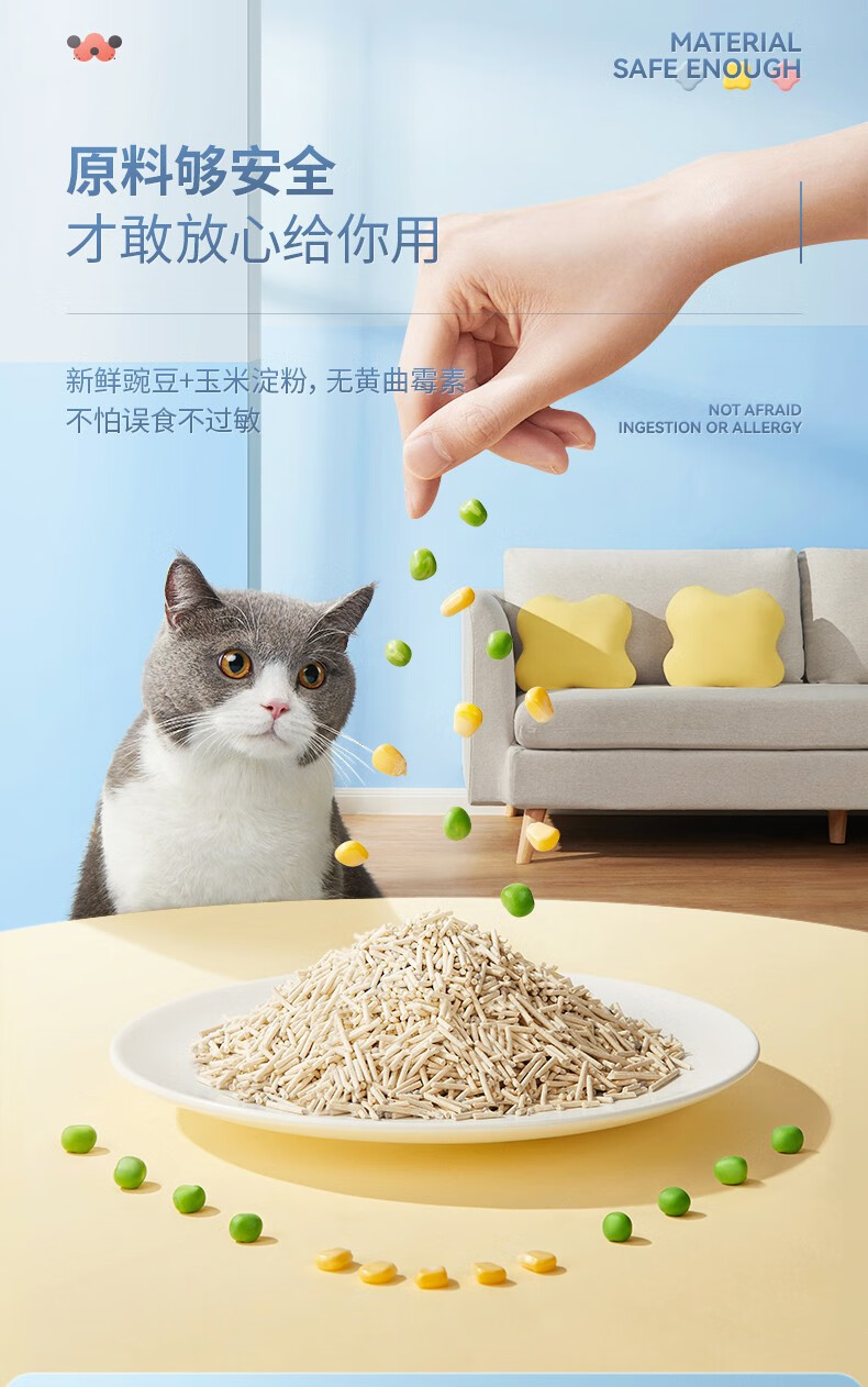 花丢丢1.5mm混合猫砂豆腐除臭无尘幼猫可冲厕所马桶猫咪用品混然天成丨小白砂【1包/2.5kg】