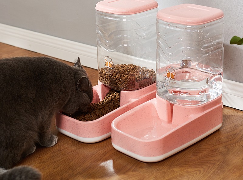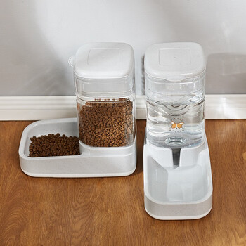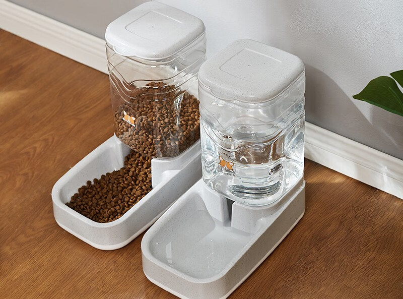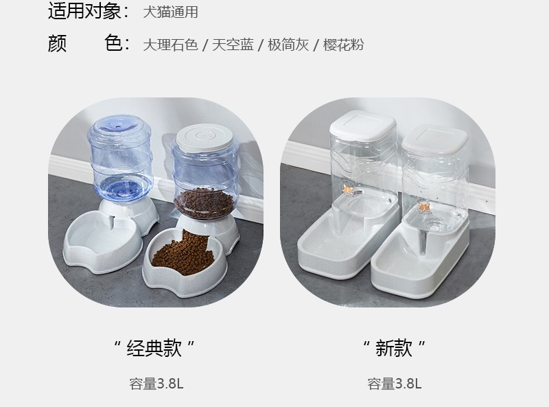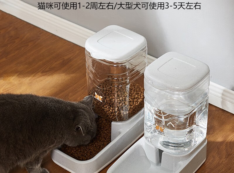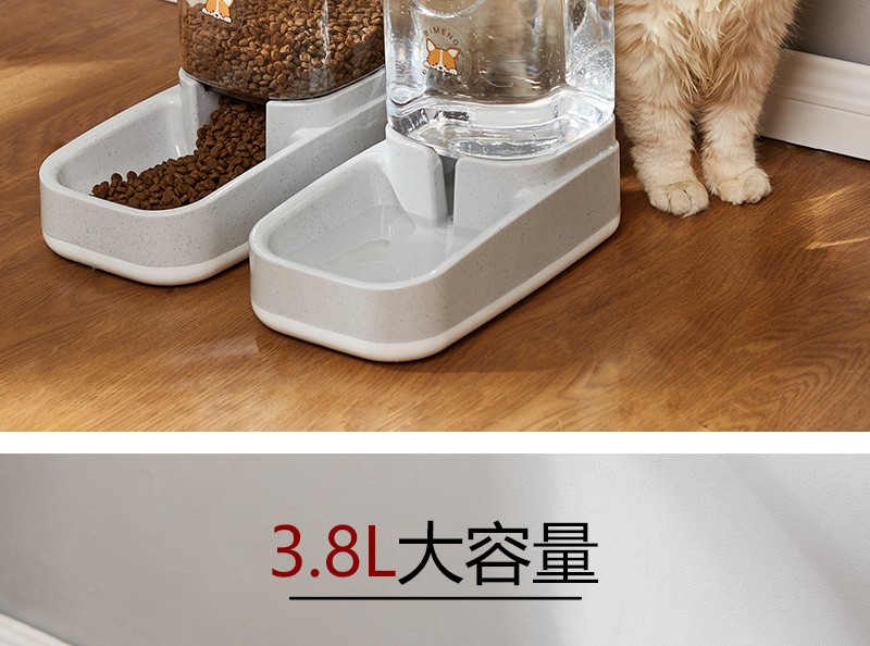 汤琪宠物自动喂食器猫咪饮水机猫盆狗盆狗碗猫粮桶狗狗喝水器防打翻猫咪用品极简灰 3.8L喂食器 3.8L喂水器