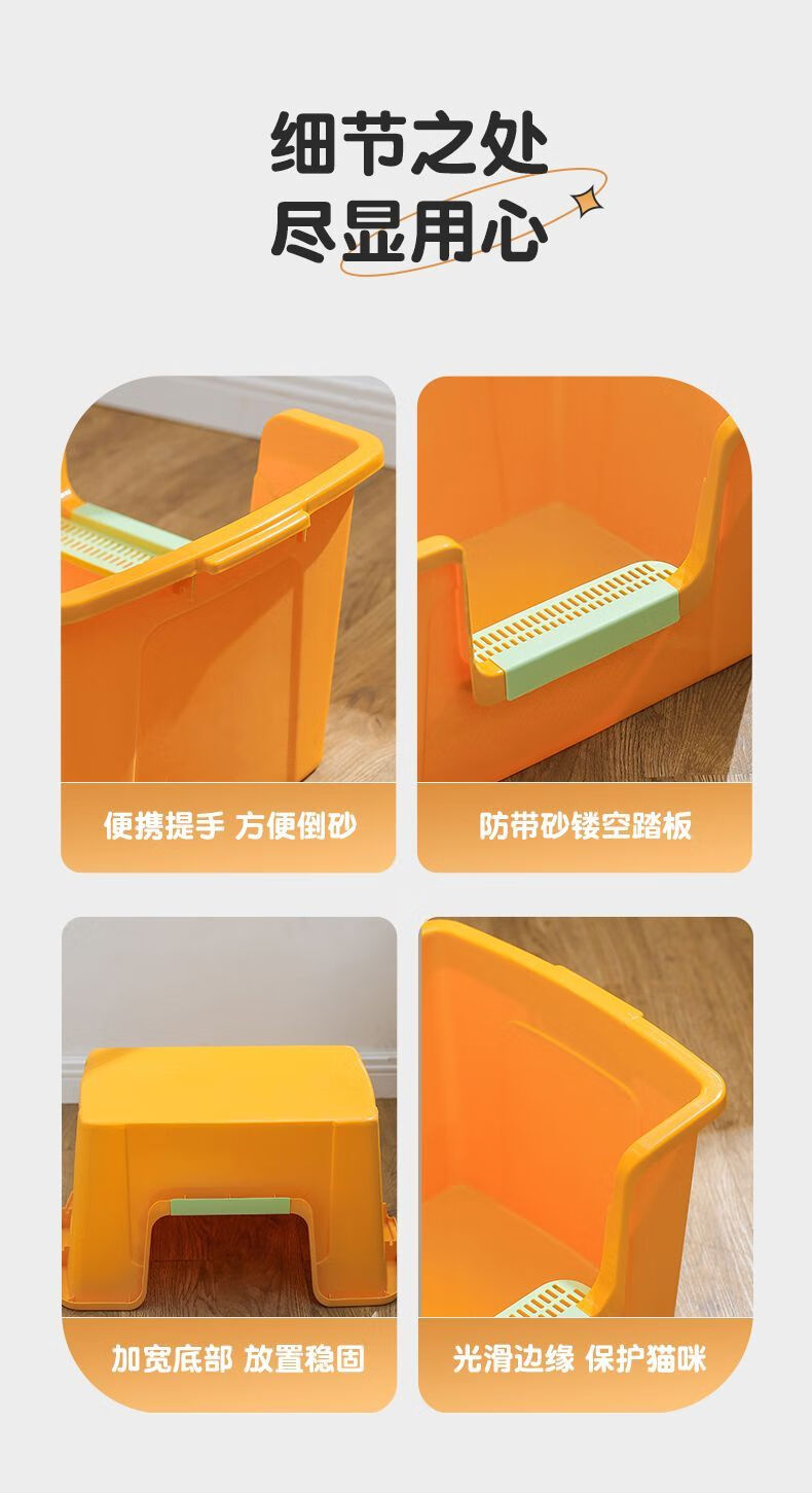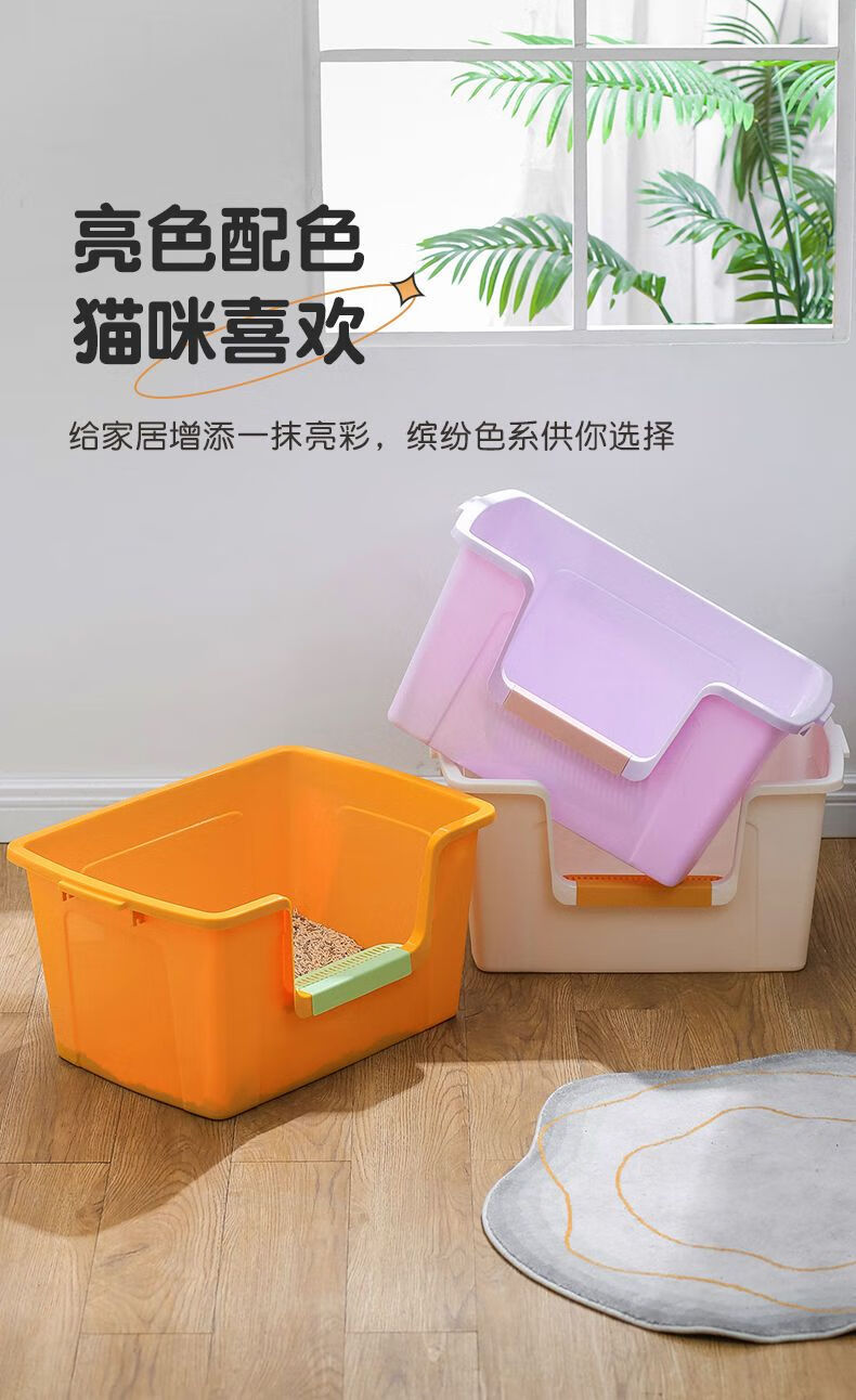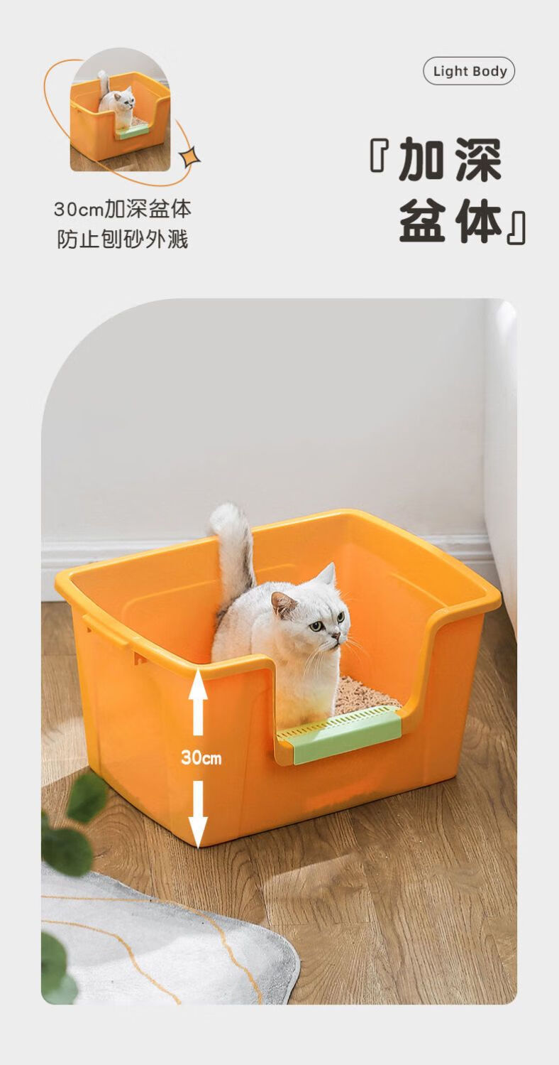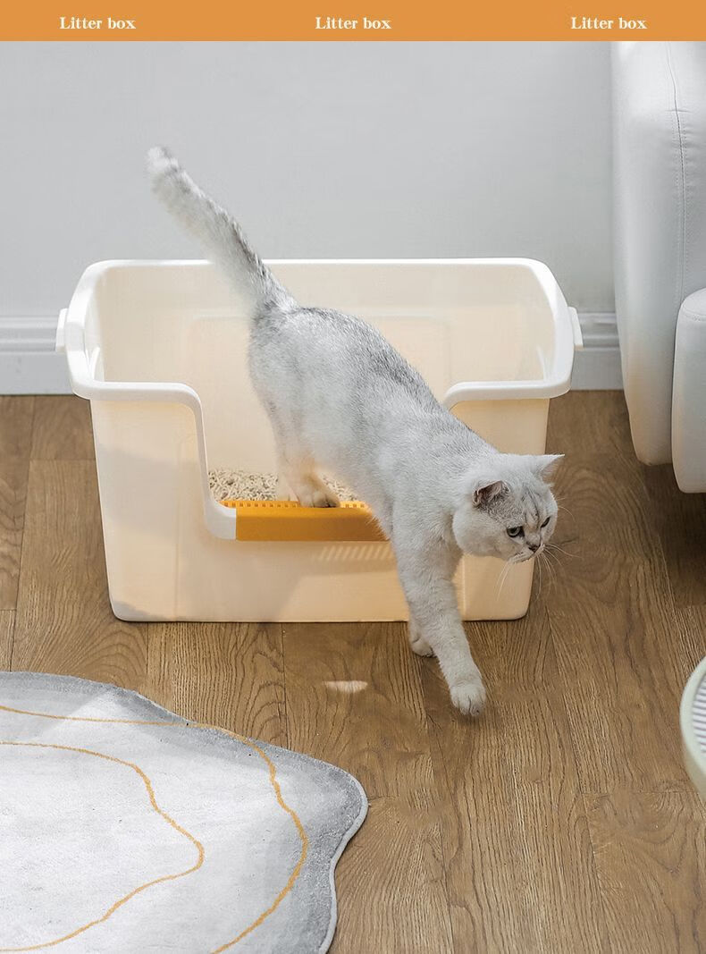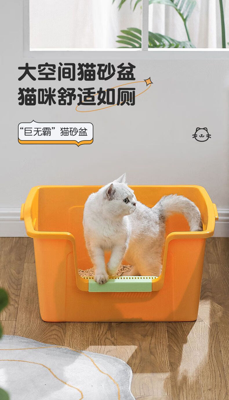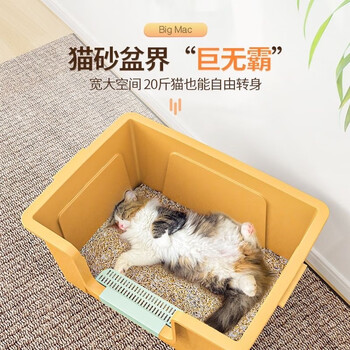 蔻丝巨型猫砂盆特大号半封闭防臭除臭超大号防外溅成猫猫沙盆半封闭幼猫猫厕所猫屎盆子黄-特大号【61*42*30】高围边 防猫砂溅出