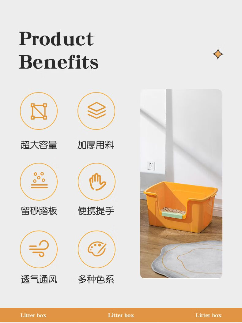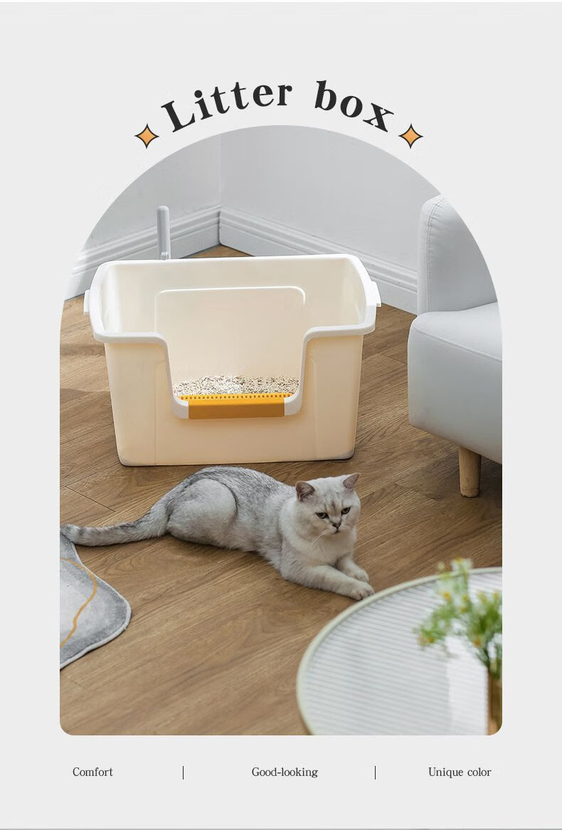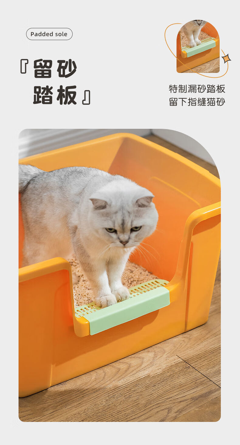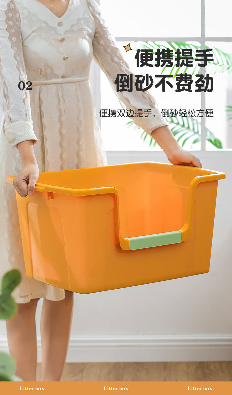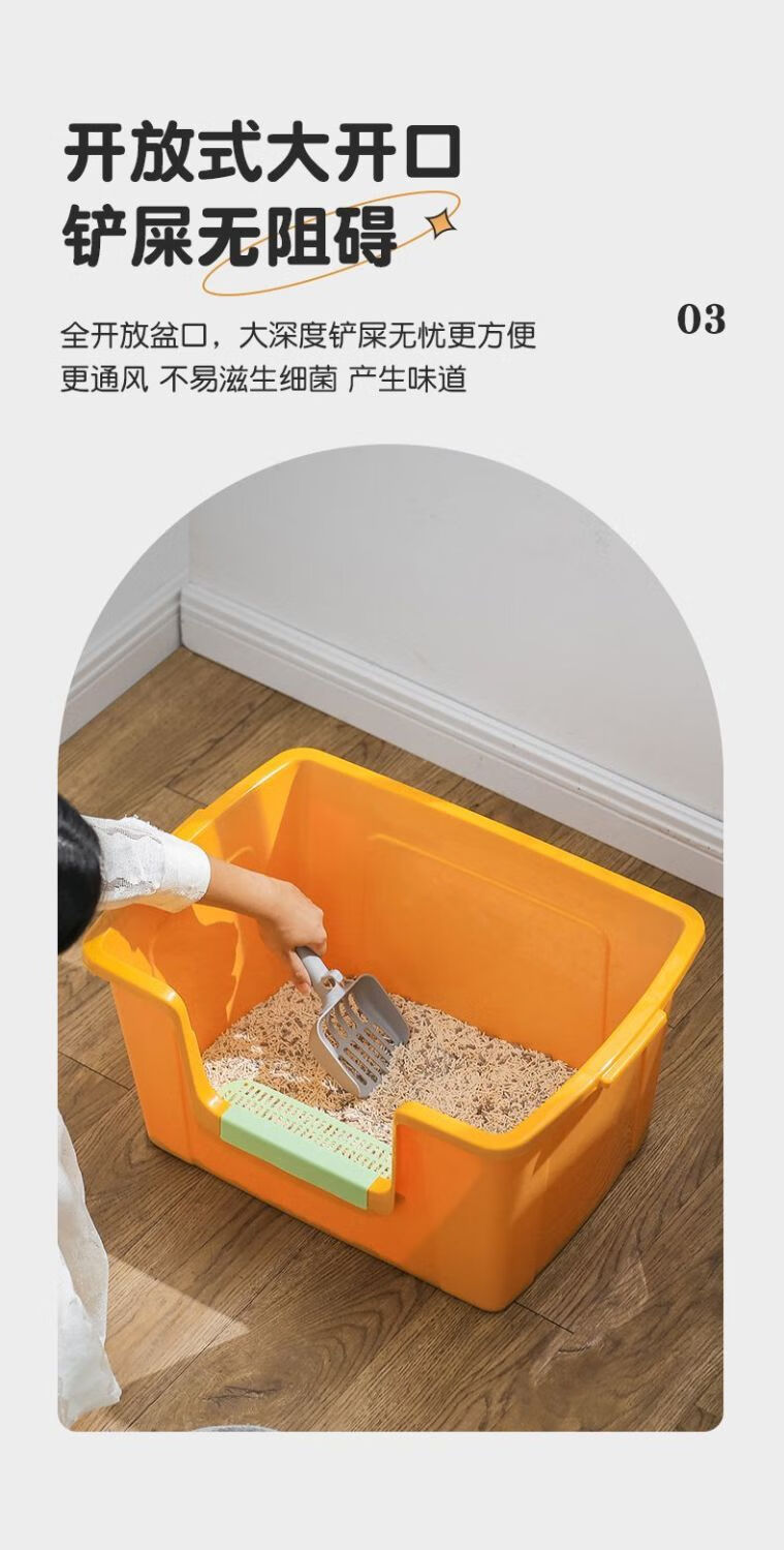 蔻丝巨型猫砂盆特大号半封闭防臭除臭超大号防外溅成猫猫沙盆半封闭幼猫猫厕所猫屎盆子黄-特大号【61*42*30】高围边 防猫砂溅出