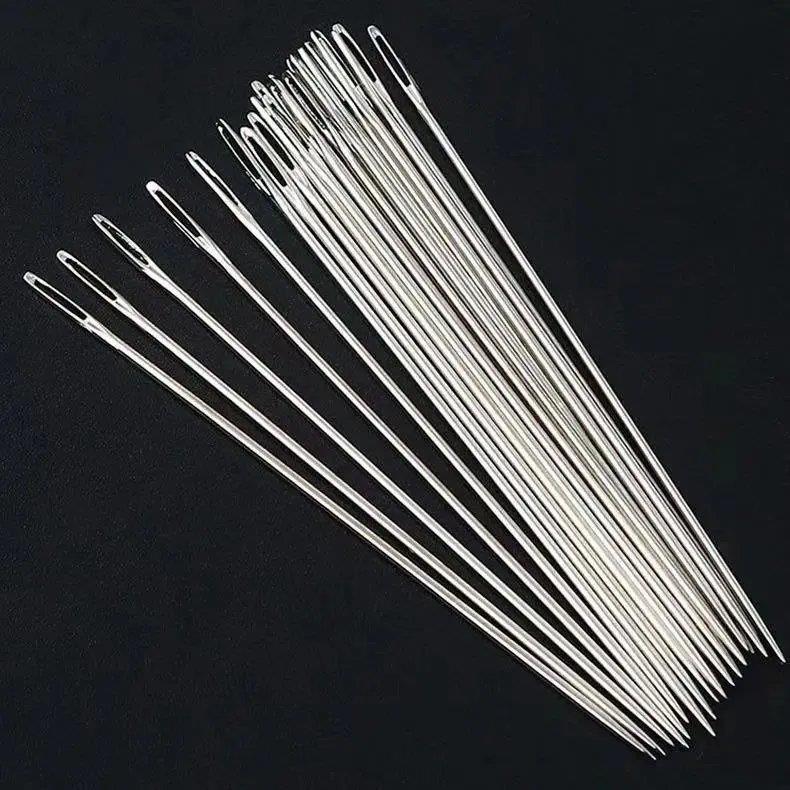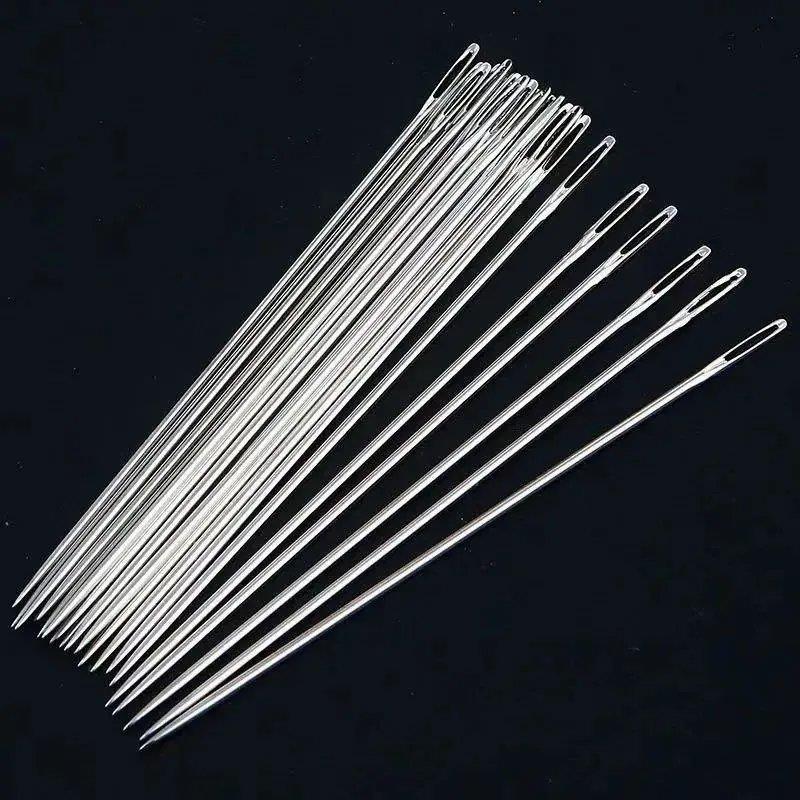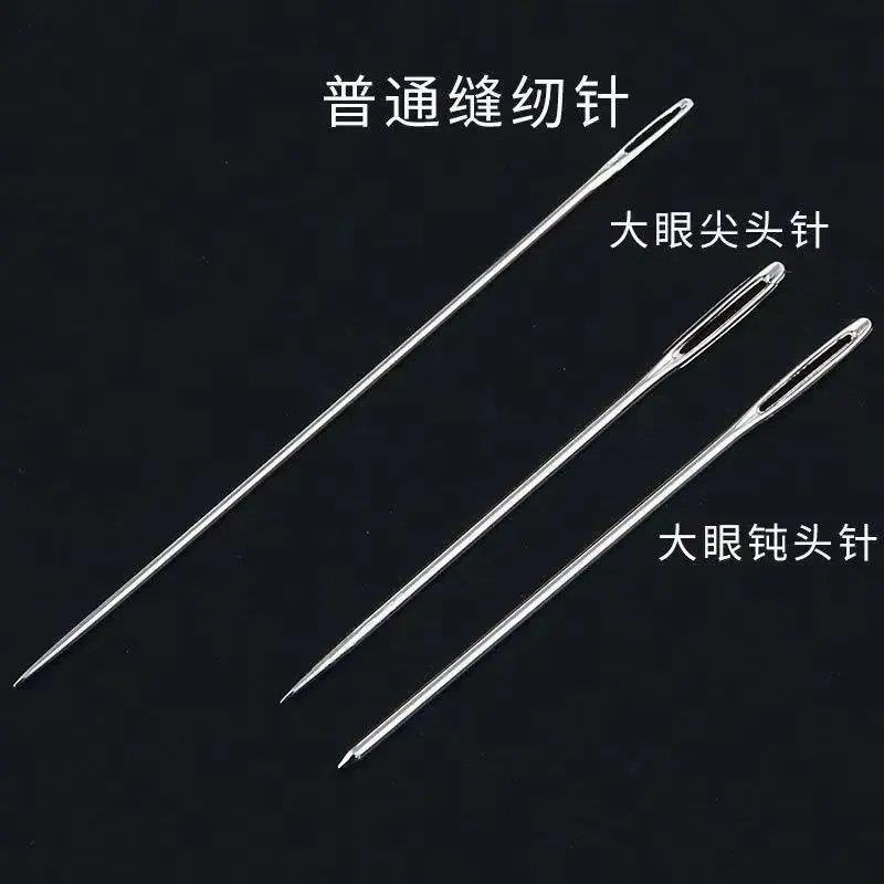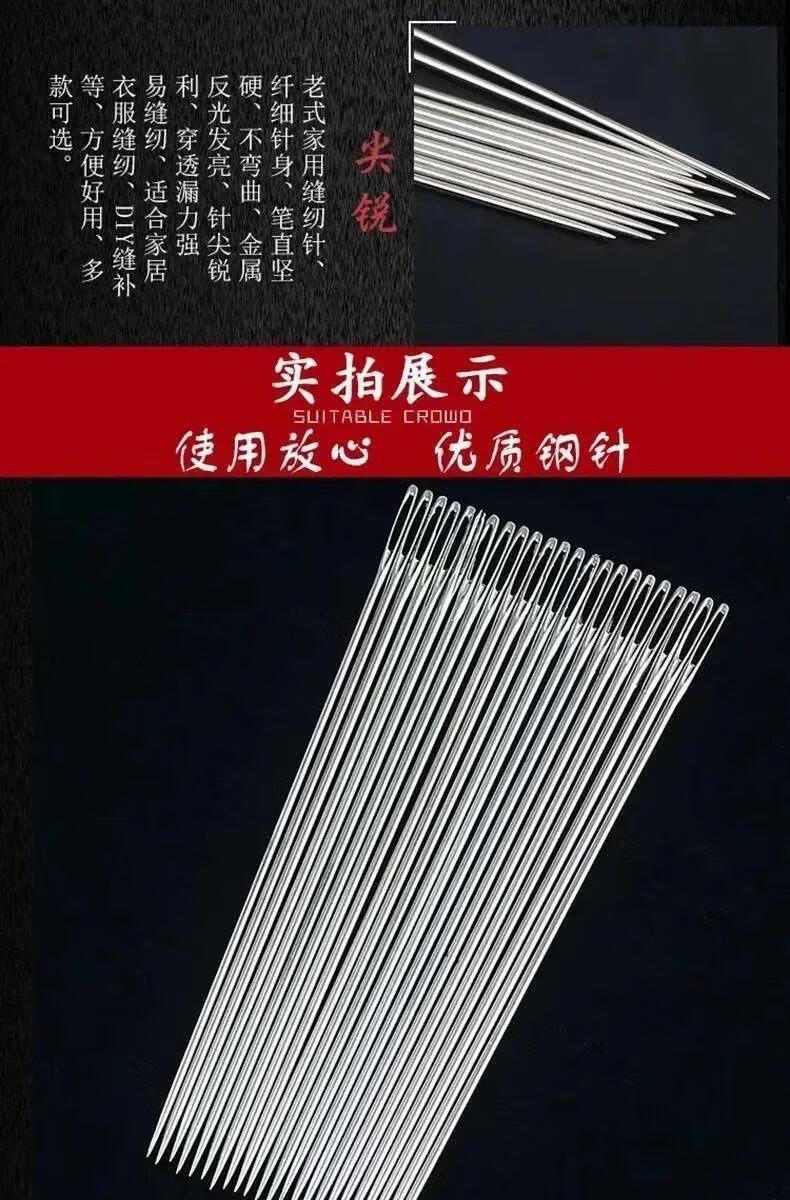 朗栩莲大眼针手缝针老人针家用大眼细长传统手工缝衣缝被子木筒针线盒24根 檀木桶装送顶针 五种尺寸混合大眼针