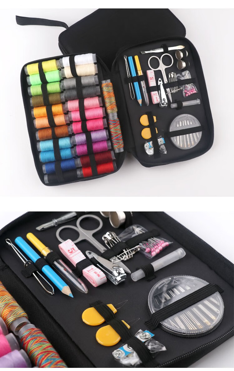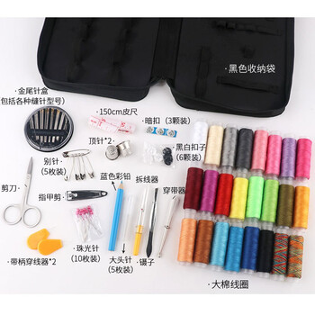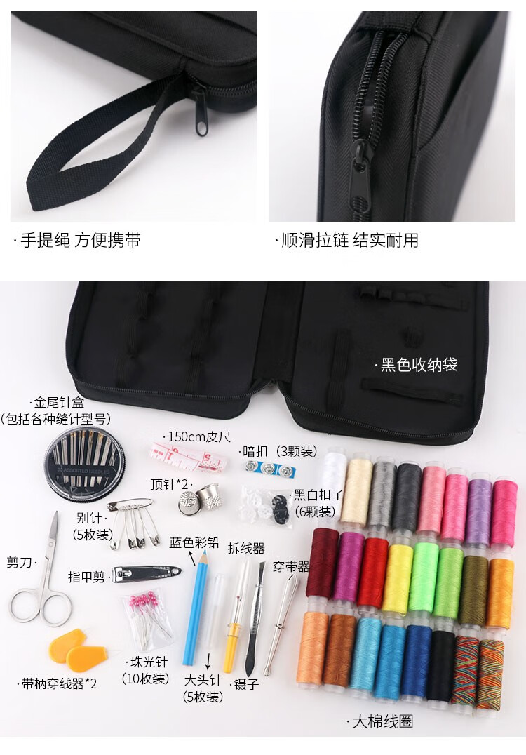 亲朋(97件套)家用针线盒套装便携式多功能针线包大容量旅行缝纫套装黑色针线包套装