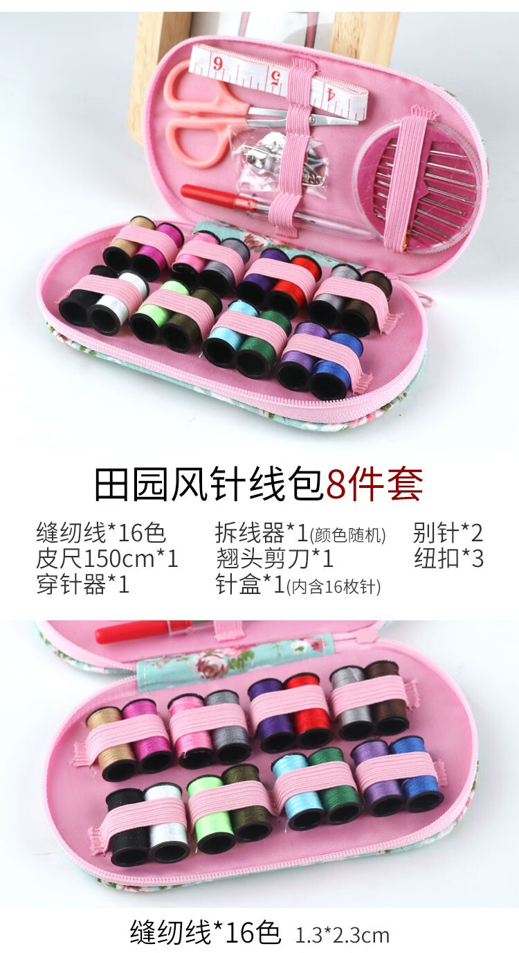 笼趣复古家用针线盒婚嫁手工缝衣服修补工具缝纫便携包线盒木质针线盒(熊猫款) 24色线