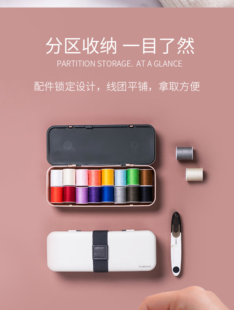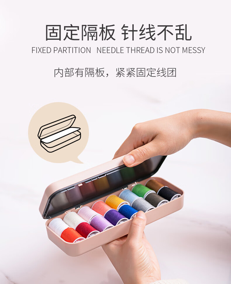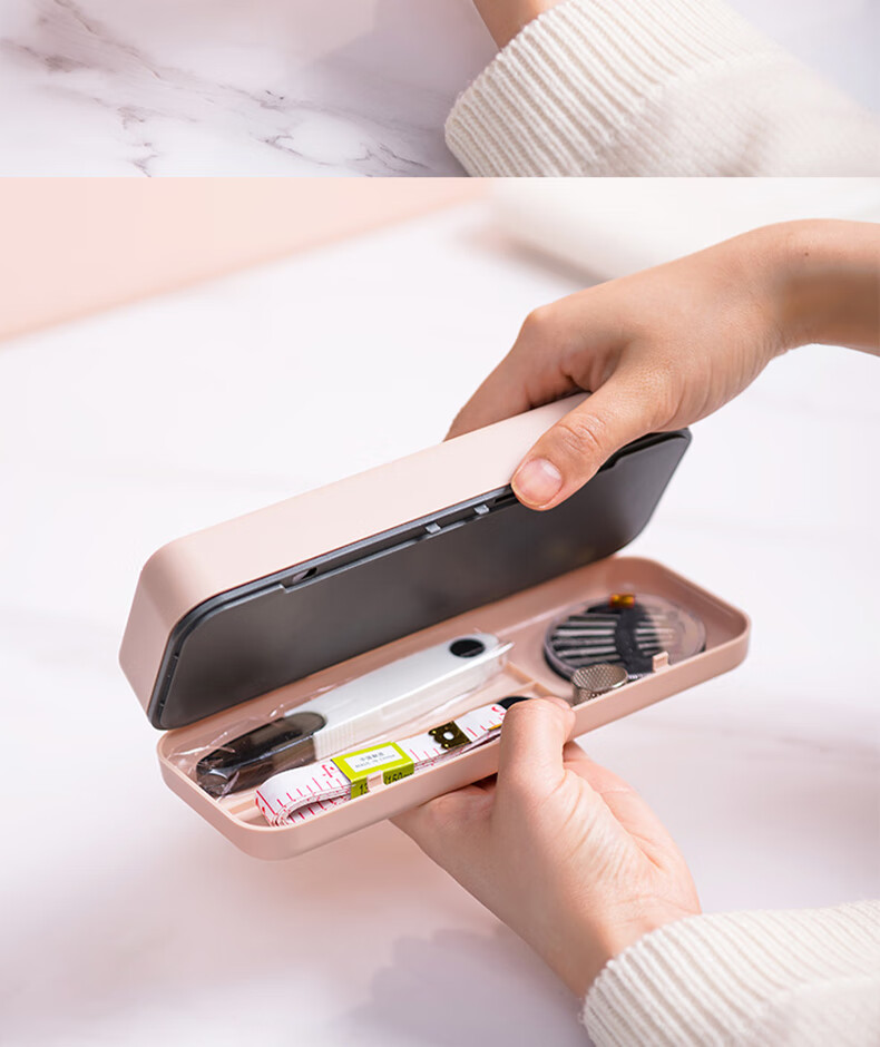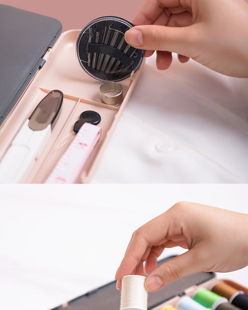 爽居家用针线盒套装 旅行便携式多功能针线包手工缝纫缝补多功能小型工具盒针线收纳盒 浅粉