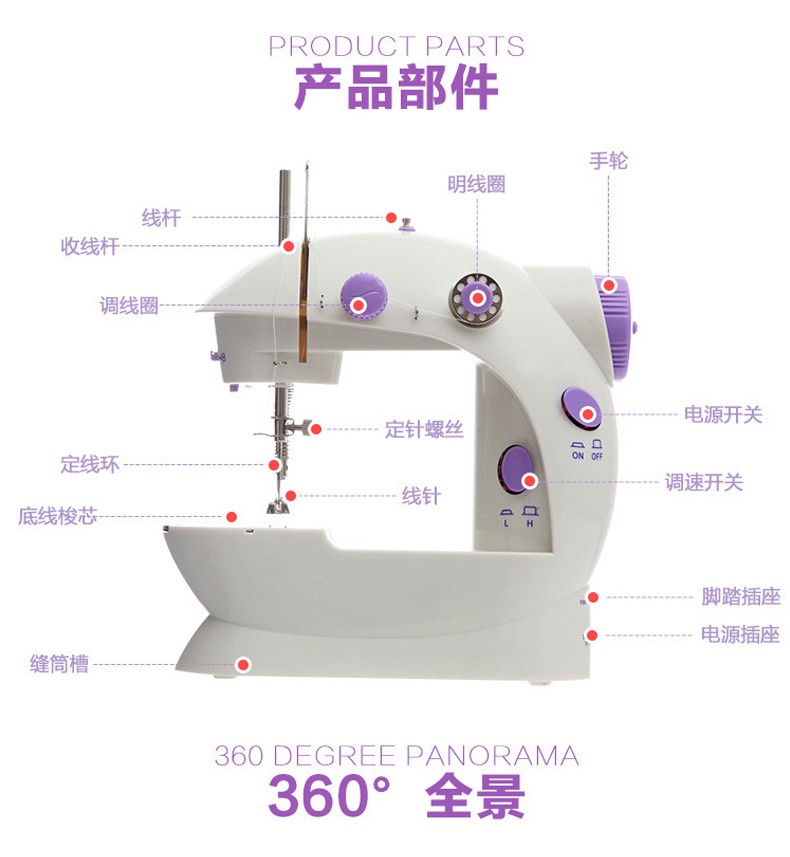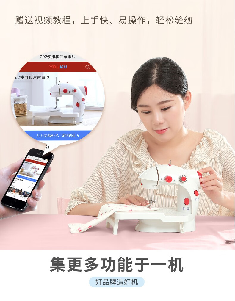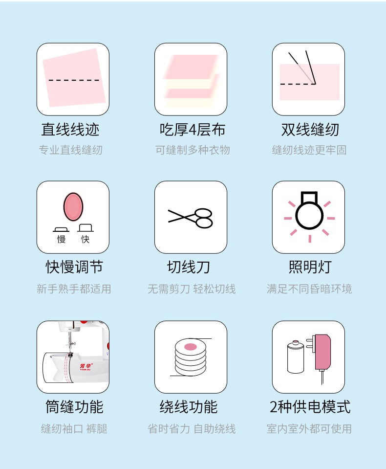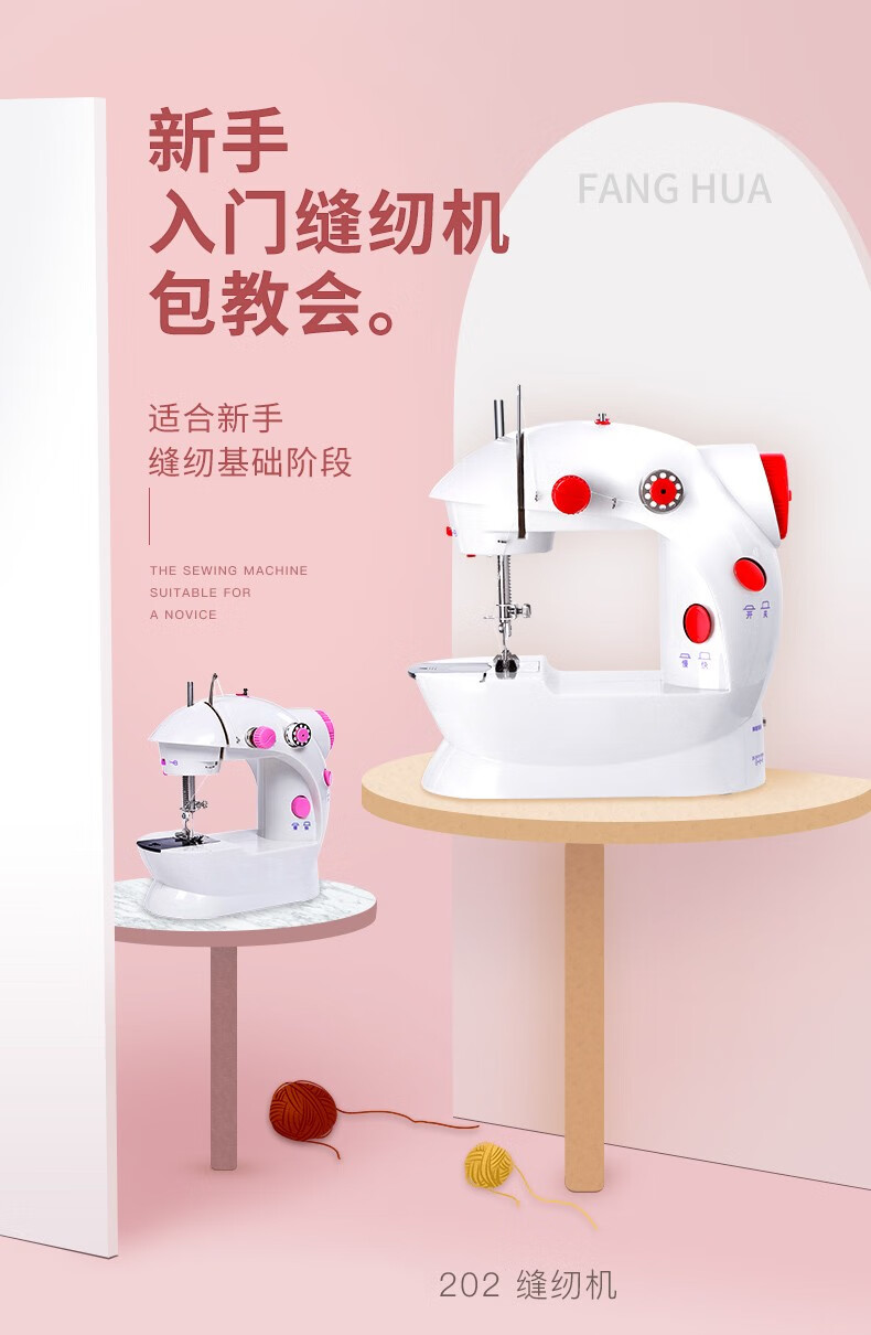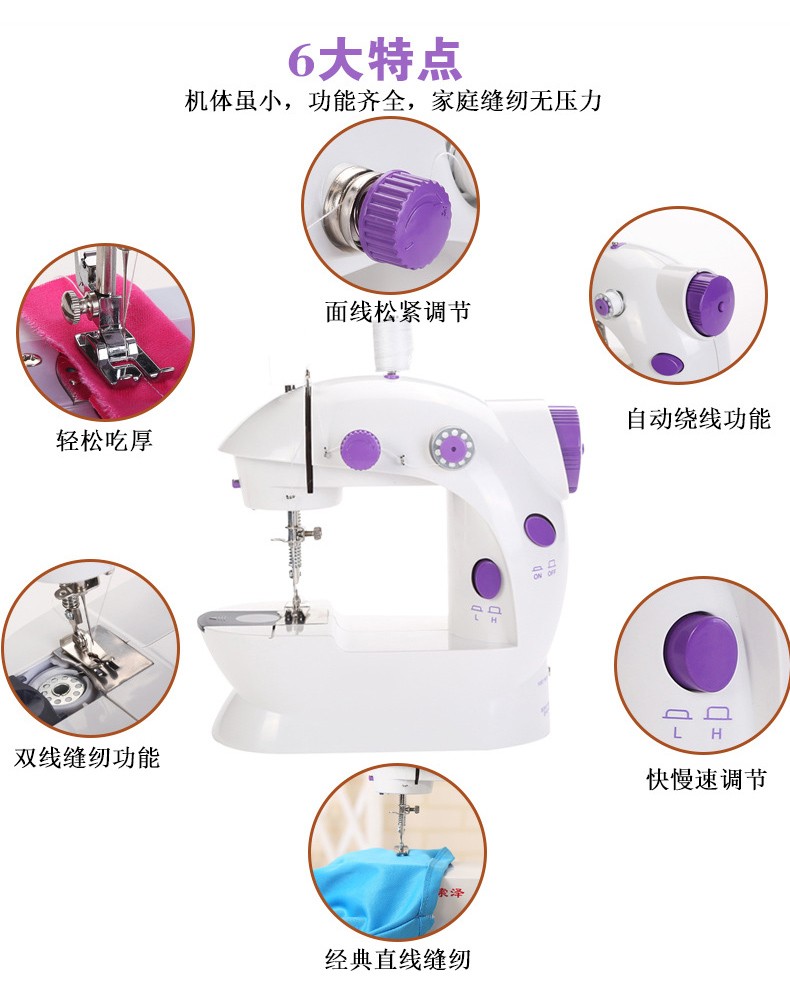 方象迷你缝纫机家用 多功能家用小型电动缝纫机自动脚踏衣车便携式吃厚微型家用锁扣眼衣车台式 10件套大号针线盒